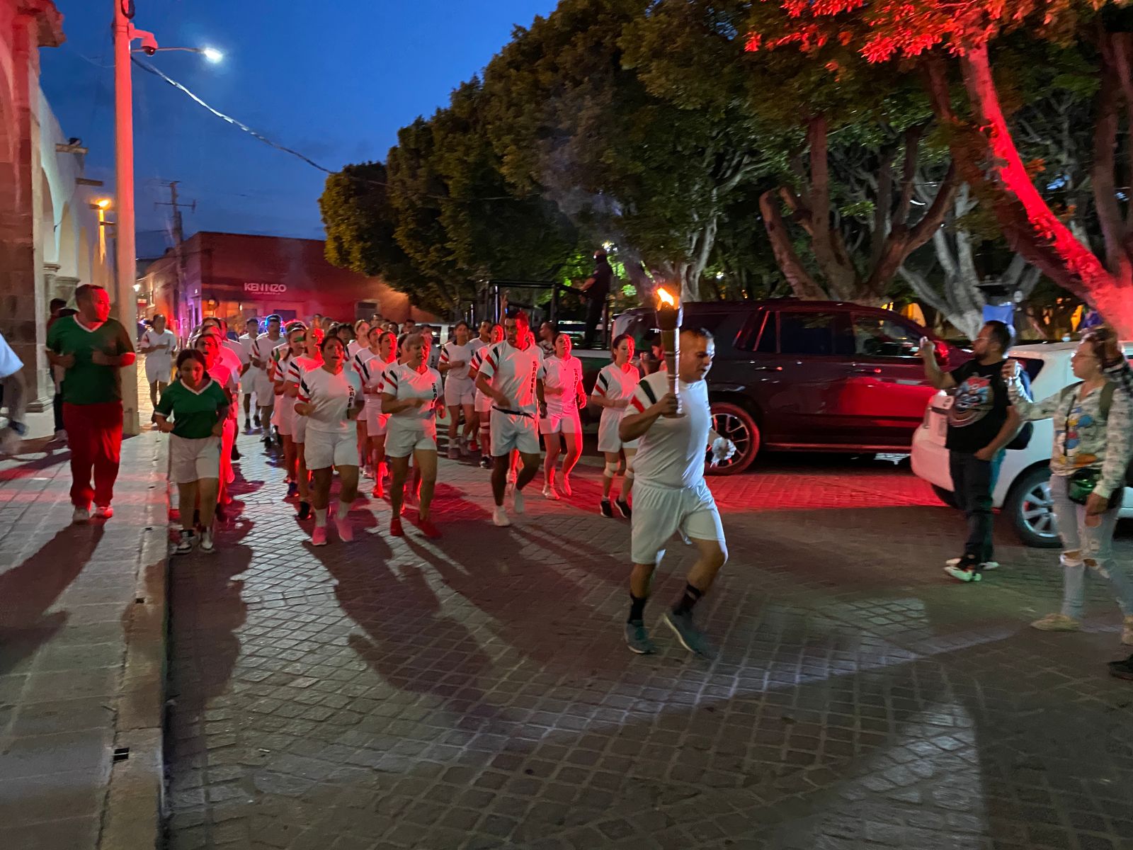 El Presidente Municipal Germán Cervantes Vega y los Regidores del Ayuntamiento recibieron al Presidente Municipal de dicha ciudad Artemio Moriya Sánchez, funcionarios que los acompañaron y a los 40 corredores que forman parte del contingente del fuego simbólico, de igual forma se les brindó una cena con platillos tradicionales.