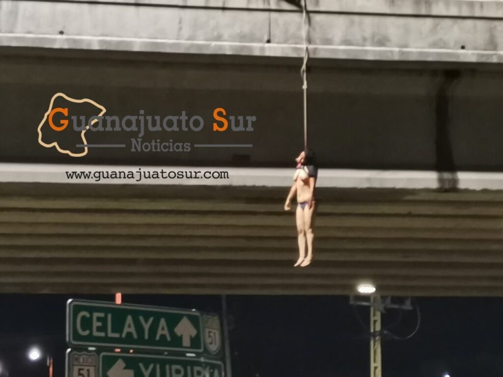 Una mujer fue localizada sin vida, colgada del puente Cuatro Caminos, el cual se ubica en el entronque carretero a los municipios de Valle de Santiago, Uriangato, Moroleón, Salvatierra, los hechos sucedieron la madrugada de este miércoles.