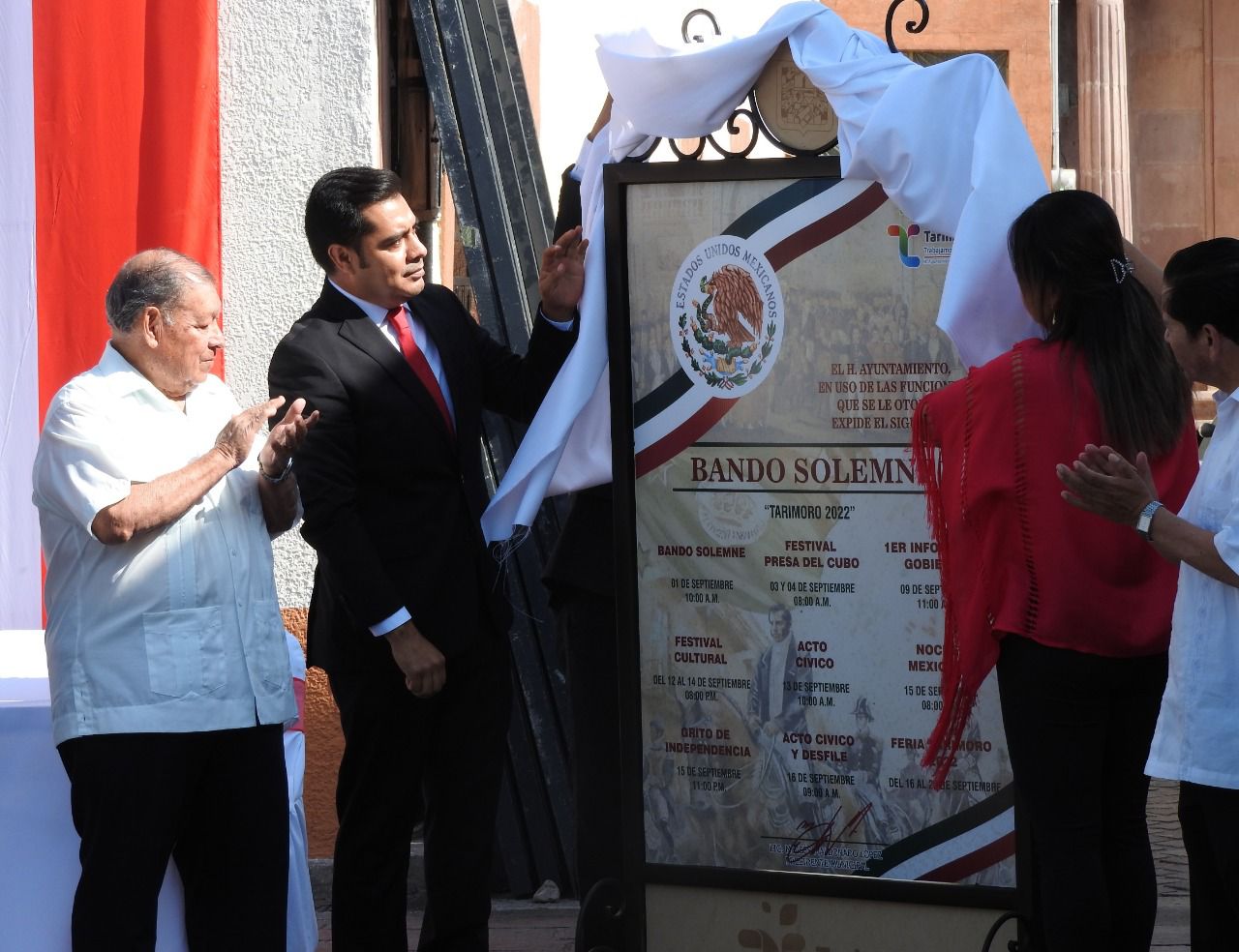 Moy Maldonado en compañía del Ayuntamiento, autoridades civiles y educativas, llevaron a cabo la develación del “Bando Solemne”, documento donde se plasman las diferentes actividades cívicas, culturales y sociales que tendrá el Municipio de Tarimoro en este mes de septiembre.