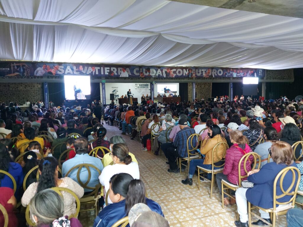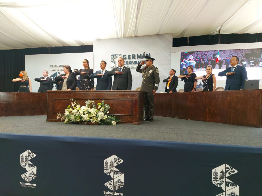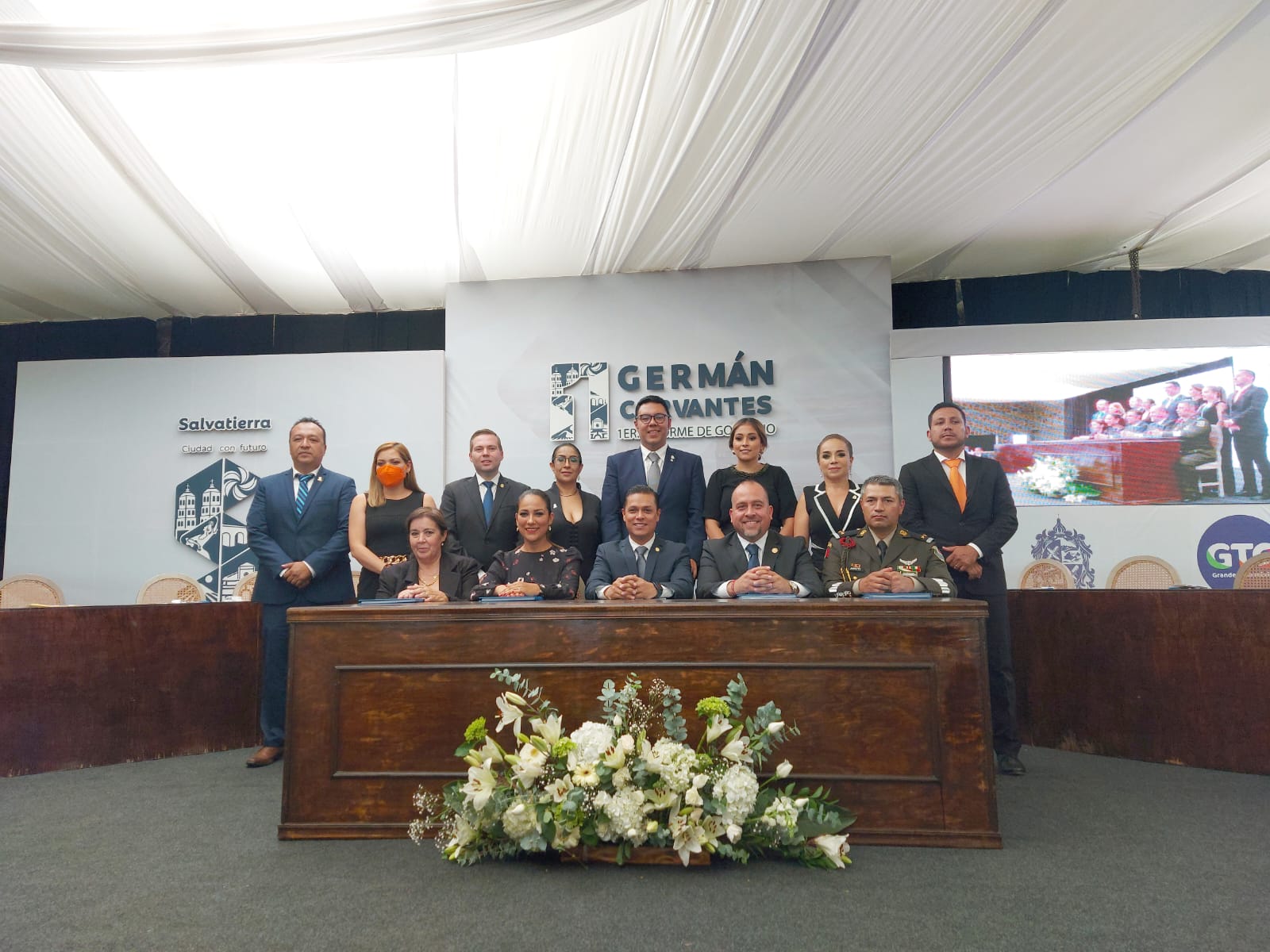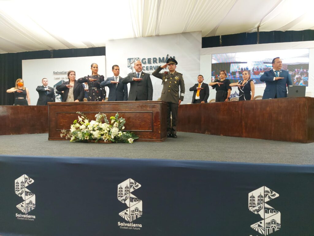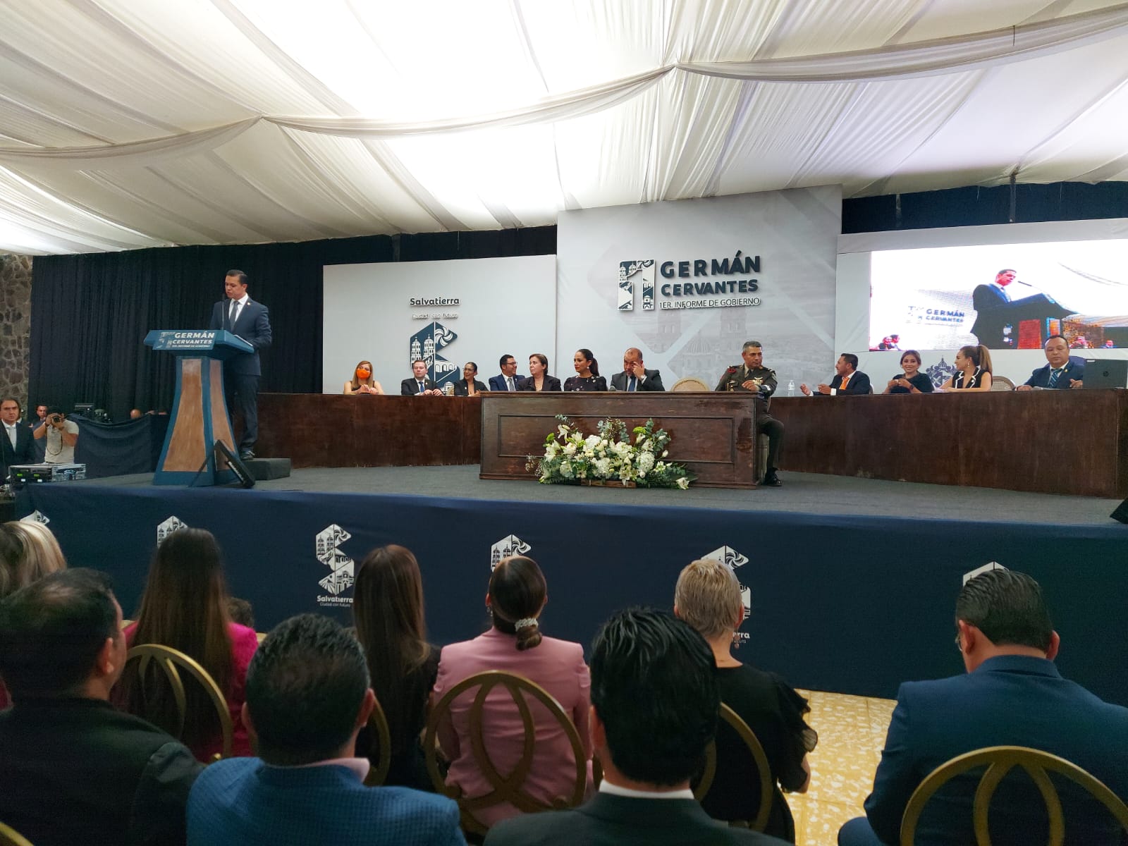 En su mensaje a la ciudadanía Germán Cervantes expresó “Hoy por hoy, tomamos las riendas del mañana con importantes avances en los rubros más significativos para la sociedad salvaterrense, entre los que destacan el desarrollo económico, social y humano, las obras públicas con impacto directo en la calidad de vida de las familias y por supuesto el apoyo y acompañamiento en los proyectos emergentes que buscan colocarnos como un puntero en salud, educación y reconstrucción del tejido social en la región para afianzar un Salvatierra con progreso y con paz.