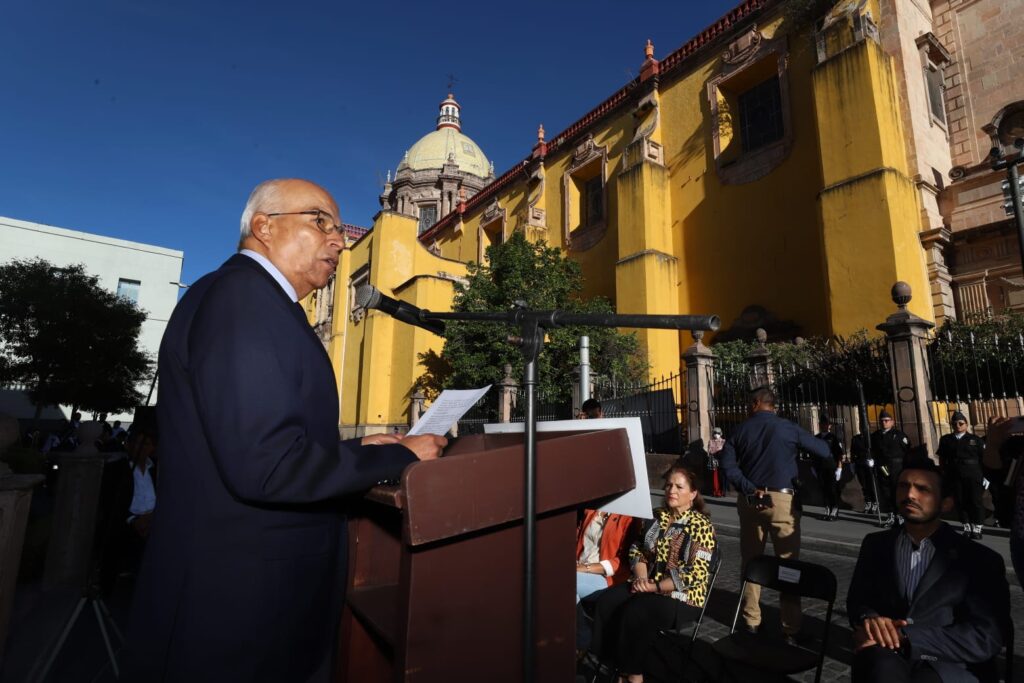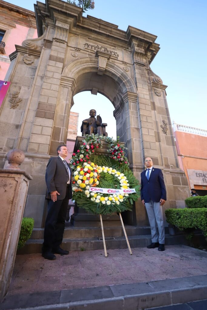 Gobierno Municipal y el Colegio de Arquitectos conmemoraron el 263 Aniversario del Natalicio del destacado celayense Francisco Eduardo Tresguerras, con un acto cívico y una guardia de honor al pié del monumento erigido en su honor.