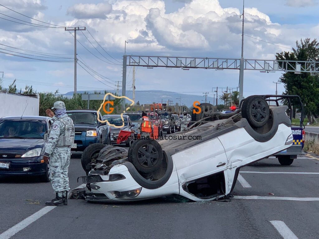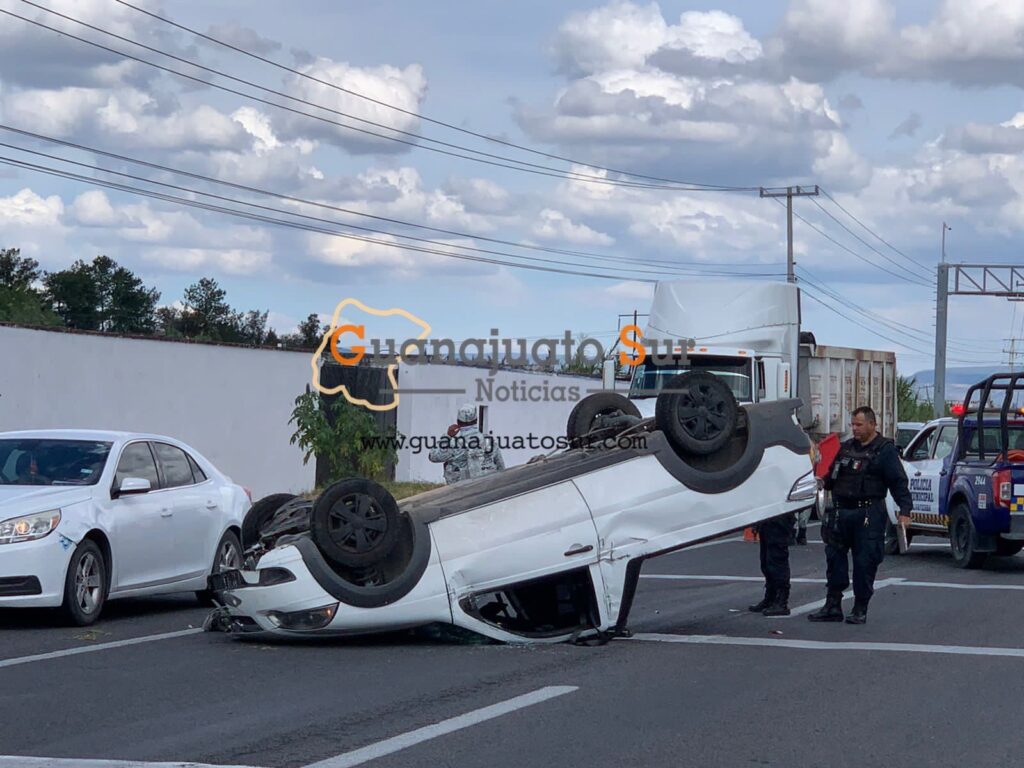 Sobre la carretera Salvatierra-Celaya, poco antes de llegar a la glorieta de Urireo el conductor de una camioneta sufrió un accidente vehicular del tipo volcadura que dejó como saldo a una mujer lesionada y daños materiales en el vehículo.