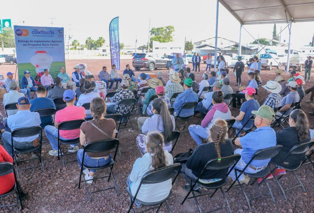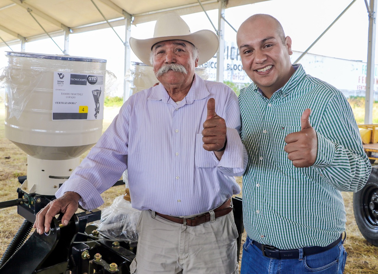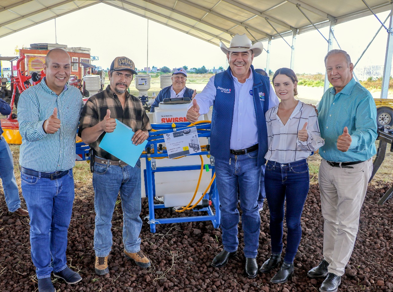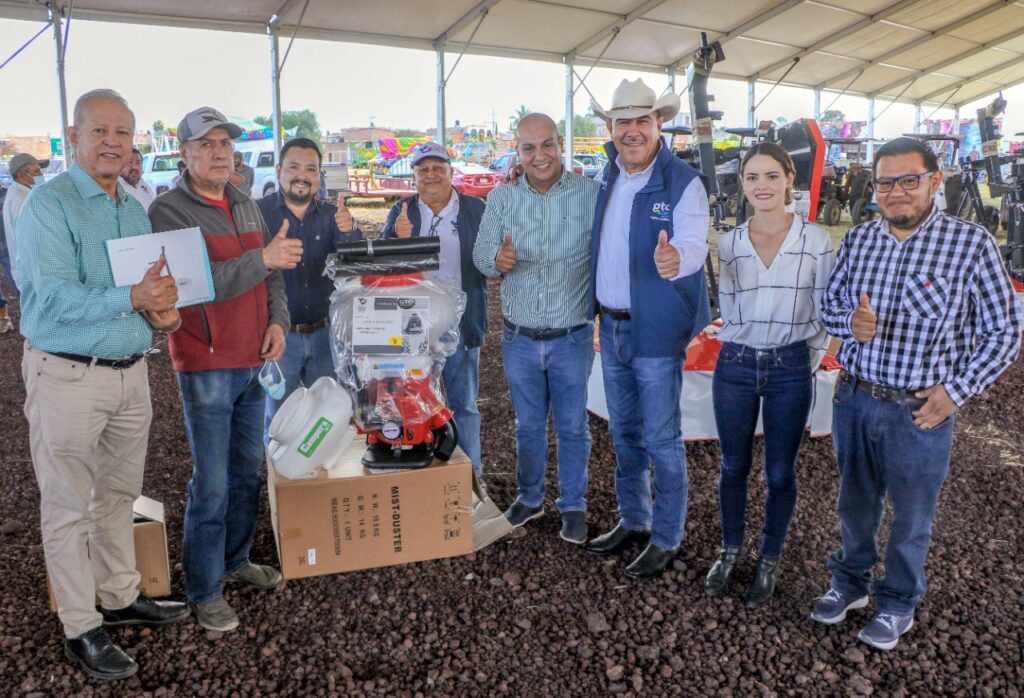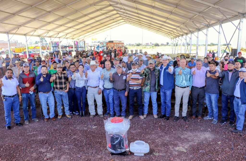 Fueron 26 productores de las comunidades de Bellavista, Colonia de Fuentes, Parra, El Diezmo, Merino, San Francisco de los León, El Huizache, Valencia de Fuentes, Ejido Corralejo, Tierrafría, Santa Fe de la Purísima, San Isidro Culiacán y San José el Poblano los beneficiados con una inversión tripartita de 840 mil 782 pesos para la adquisición de aspersores de mochila motorizada, multiarados, cultivadora, aspersora para tractor, desvaradora, fertilizadora, segadora y niveladora.