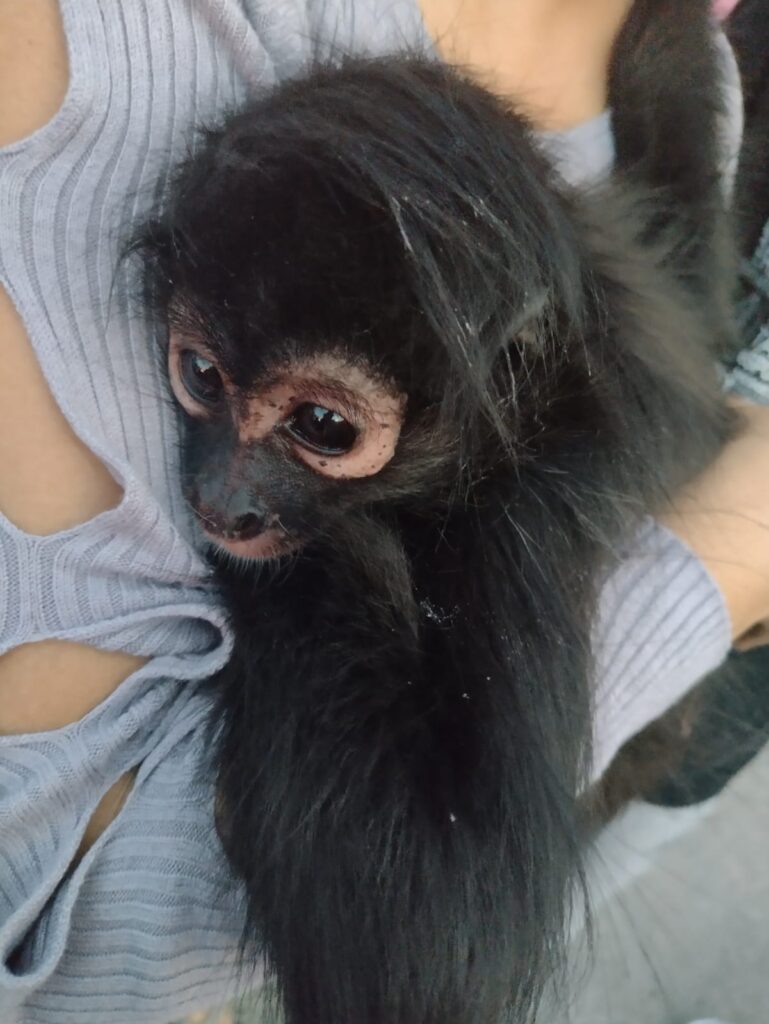 Los elementos acudieron a la calle Villahermosa de dicha colonia, donde localizaron a un mono araña sobre la vía pública y debido a que estaba domesticado, fue asegurado sin mayor problema.