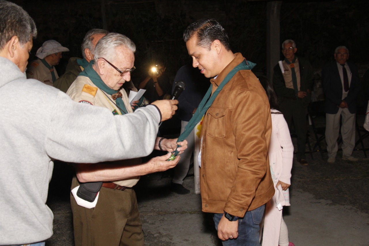 El Presidente Municipal Germán Cervantes Vega acudió como invitado de honor a la fogata con motivo del 12 aniversario de antiguos Scouts llevada a cabo la noche del pasado sábado. Los integrantes de esta agrupación junto con sus amigos y familias participaron primeramente en una misa de acción de gracias en el templo de capuchinas.