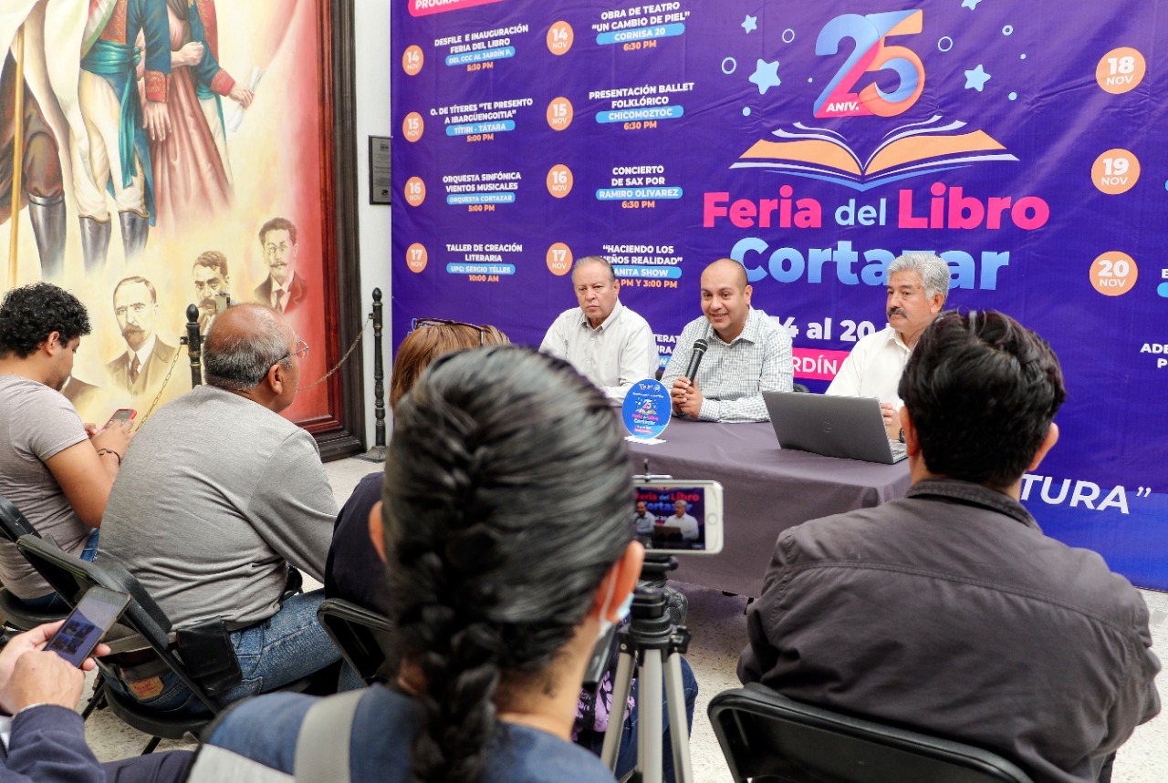 Como parte de las actividades en pro de la cultura, el Presidente Municipal Ariel Corona, acompañado de autoridades municipales presentó el programa de la Feria del Libro “Encuentro con la Lectura” que se desarrollará en el Jardín Principal del 14 al 20 de noviembre.