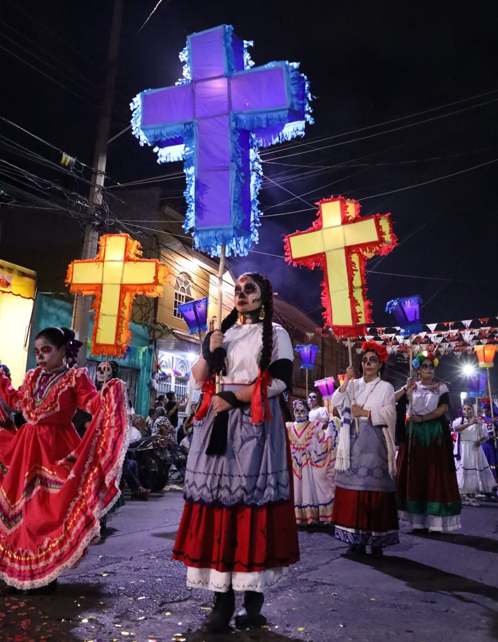 Los habitantes de los barrios colaboraron con el encendido de las lumbradas en las puertas de sus casas para continuar con esta tradición. El punto final del recorrido estuvo afuera del Panteón Municipal Norte.