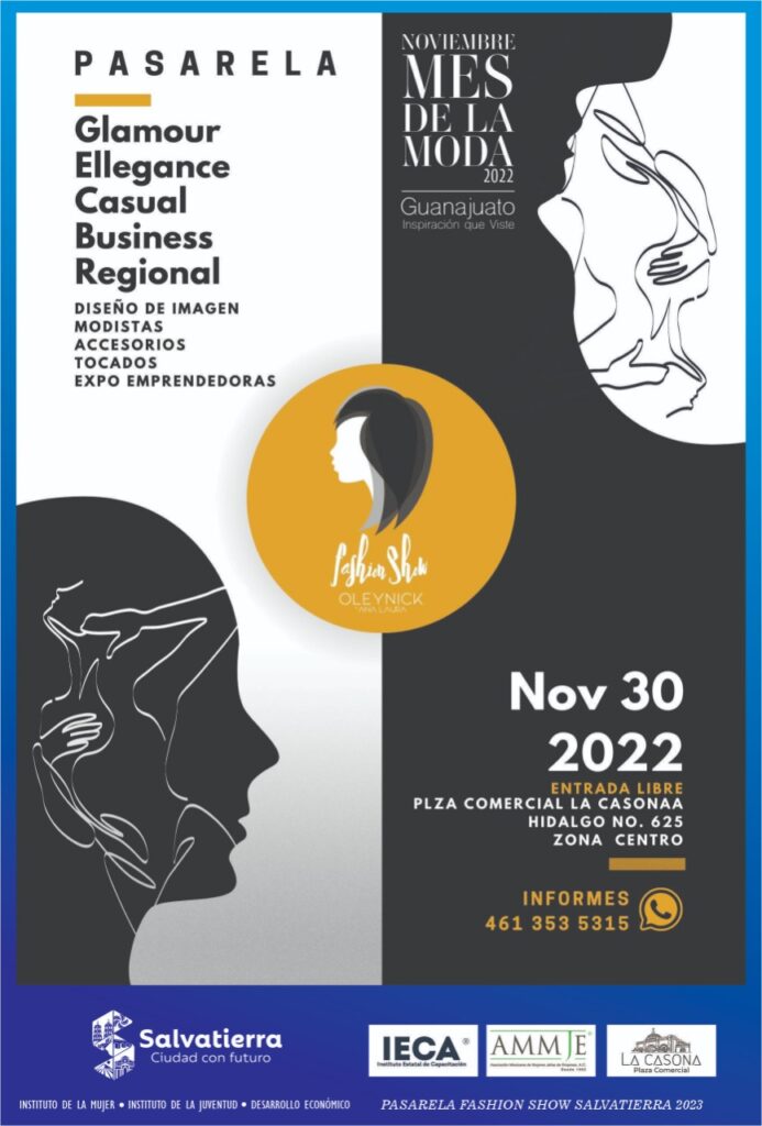 Además a las 6 de la tarde en La Casona se realizará una pasarela de moda en donde se darán a conocer diferentes vestuarios elaborados por diseñadores de Salvatierra y estatales.