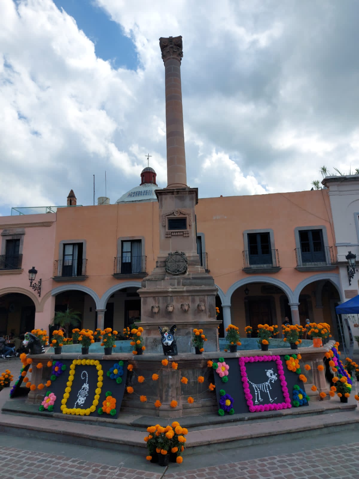 La ofrenda se realizó en la fuente de los perros y fue creada por el equipo de Control Canino de la Dirección de Salud, rescatistas independientes, equipo de eventos especiales, integrantes del grupo de artesanas de nombre Manos Mágicas y ciudadanos que se sumaron a la causa.