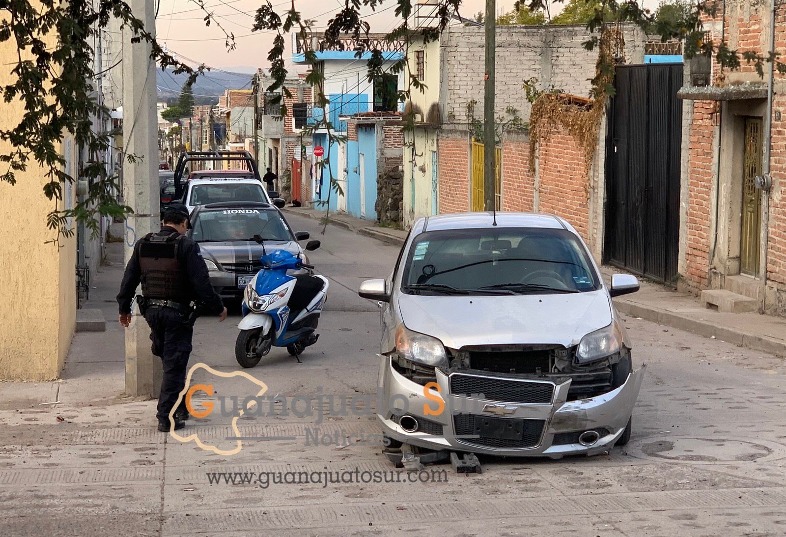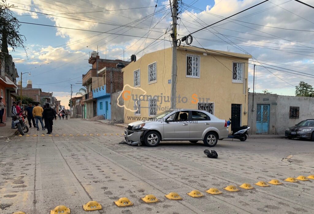 El accidente ocurrido en la colonia Guanajuato ocurrió entre el conductor de un automóvil de la marca Chevrolet de color gris que impactó de frente a dos personas que viajaban en una motocicleta tipo Cross de color rojo con blanco.