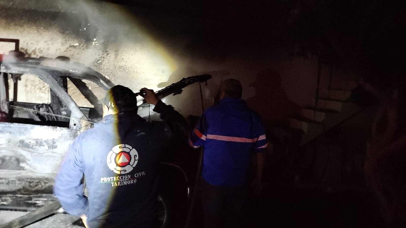 Según los primeros informes algunas personas estaban jugando con pirotécnia cerca de la vivienda donde se encontraba estacionada una camioneta familiar tipo van de color negro por lo que la chispa de algún “cuetito“ provocó que se iniciara el incendio en el vehículo que se valoró como pérdida total.