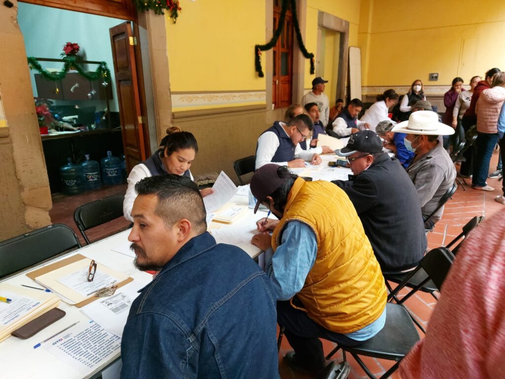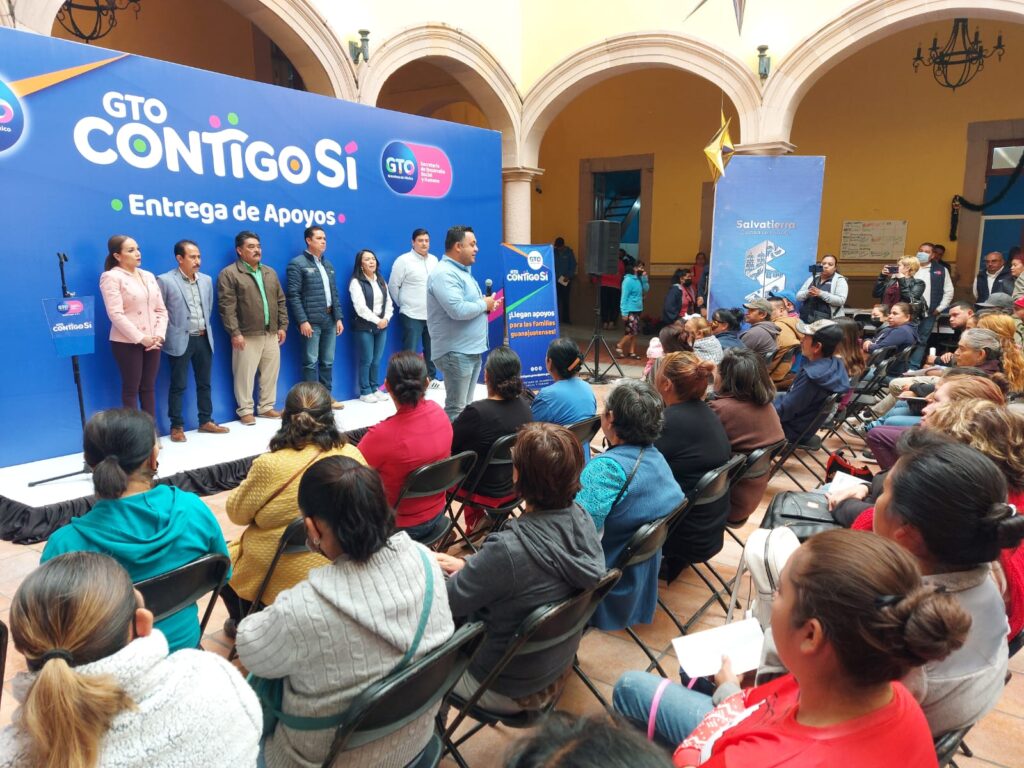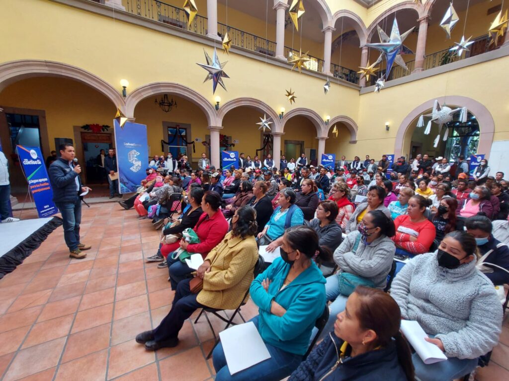 El Presidente Municipal Germán Cervantes Vega, Alma Romero Directora General de Fortalecimiento al Ingreso Familiar de la SEDESHU, Arturo Donaciano Salazar Soto Director de Articulacion Regional 5 de SEDESHU, regidores del Ayuntamiento, el director de Desarrollo Social Samuel Maturino Hernández realizaron la entrega del pago de jornales a los salvaterrenses que se encuentran realizando trabajos de pavimentación y creación de mural en la ciudad.