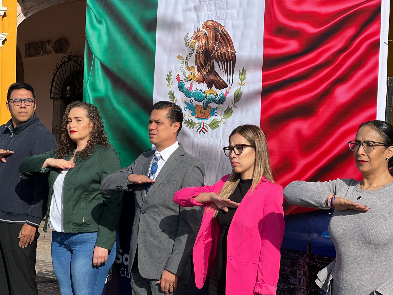 Con motivo del Día de la Bandera Mexicana se llevó a cabo un acto cívico en la Explanada del Carmen participando integrantes del gobierno municipal, estudiantes y ciudadanía en general.