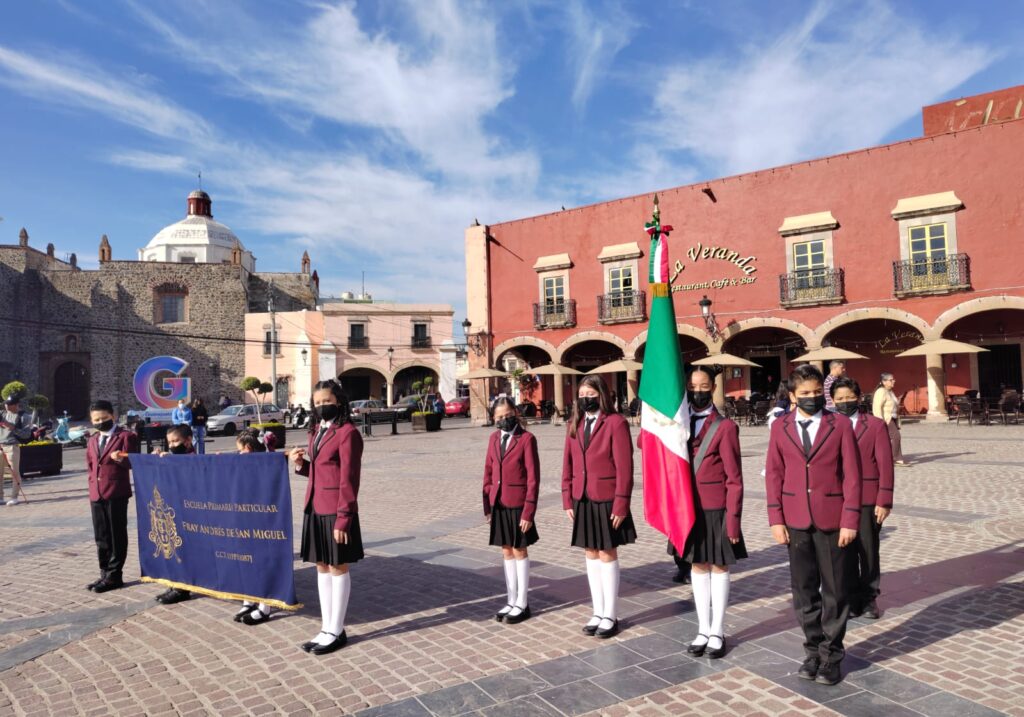 Así mismo la Historiadora Rosario Orzoco Mosqueda dio una reseña histórica de la fecha y alumnos de primaria del Complejo Educativo Fray Andrés de San Miguel mostraron las diferentes banderas mexicanas que se han tenido a través del tiempo.