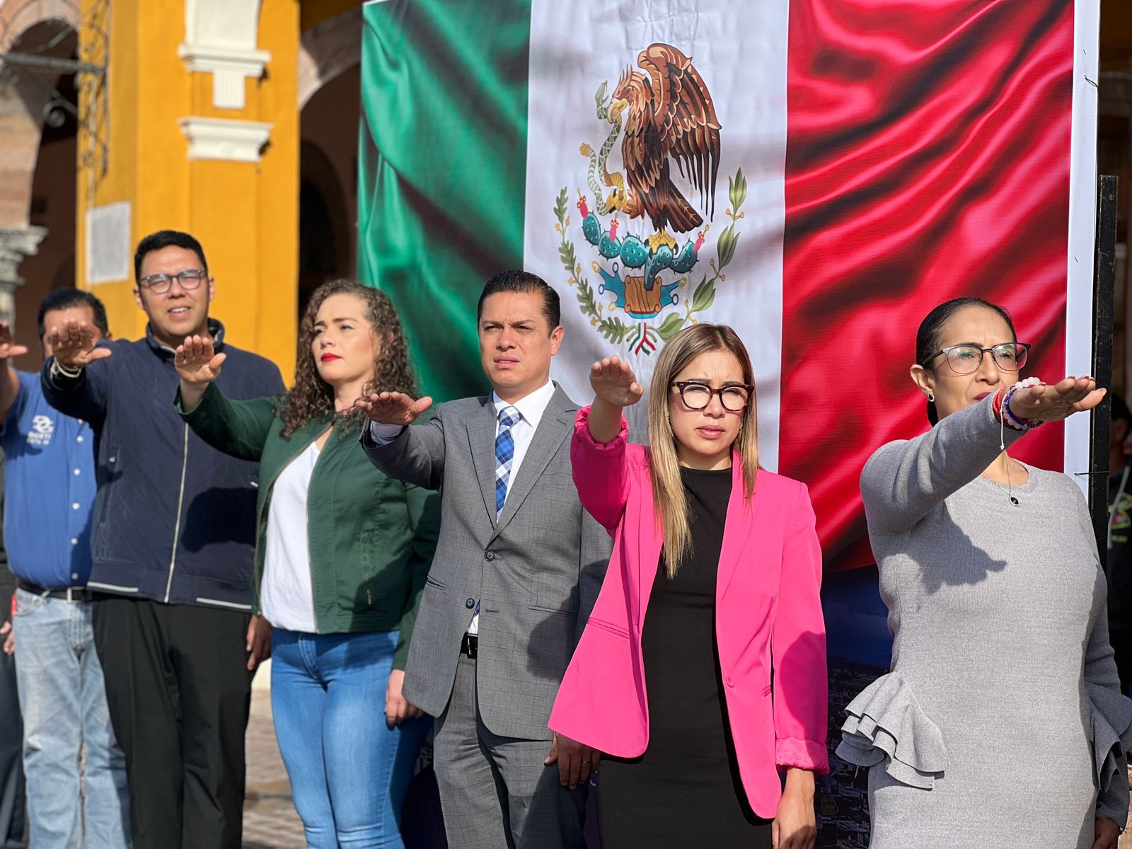 Con motivo del Día de la Bandera Mexicana se llevó a cabo un acto cívico en la Explanada del Carmen participando integrantes del gobierno municipal, estudiantes y ciudadanía en general.