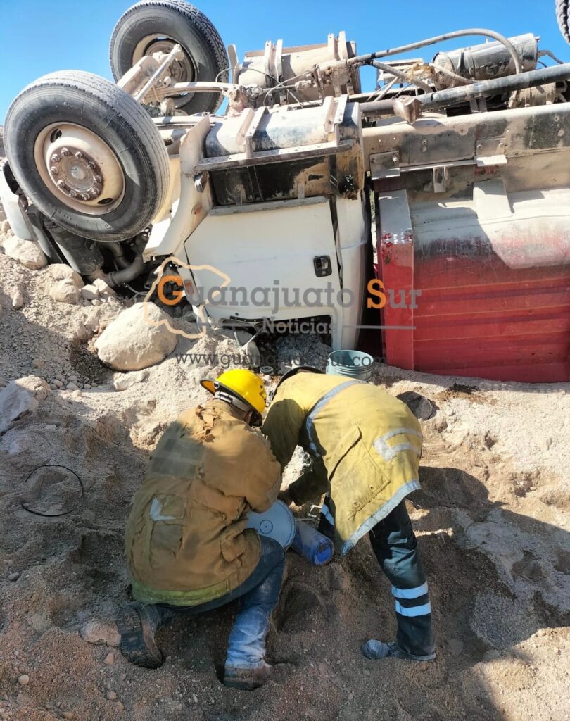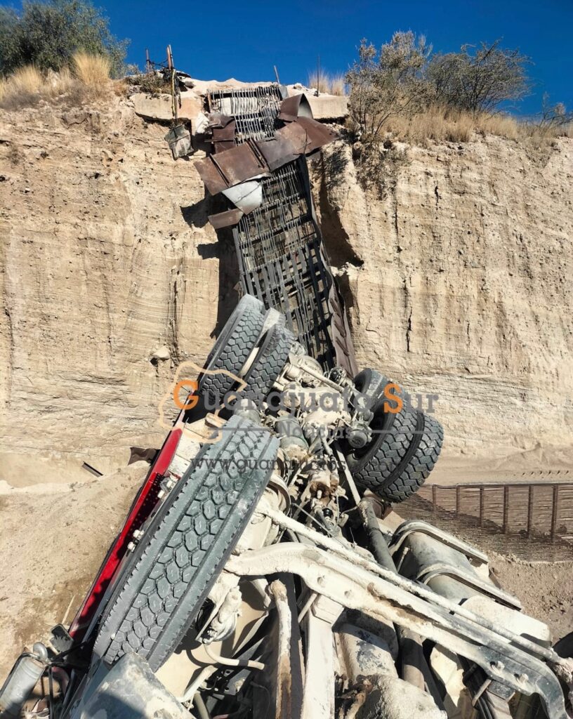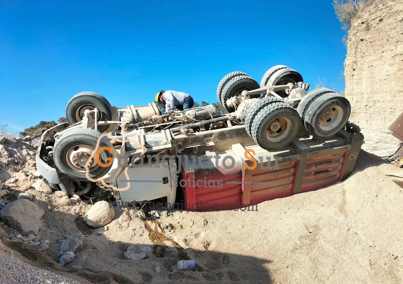 Un hombre de la tercera edad resultó lesionado luego de que el camión de volteo que conducía se desbarrancara en La Arenera en el Cerro del Toro.