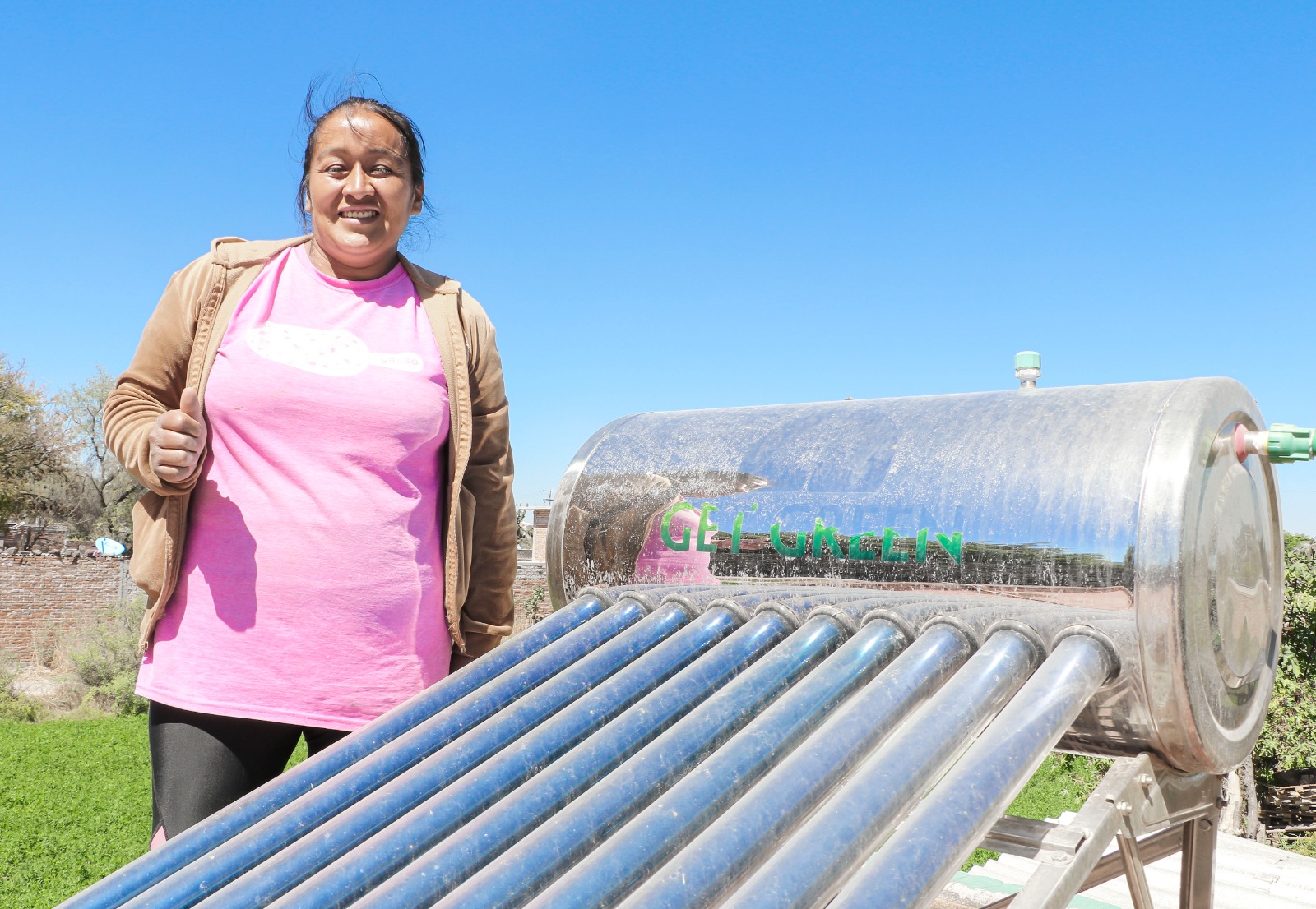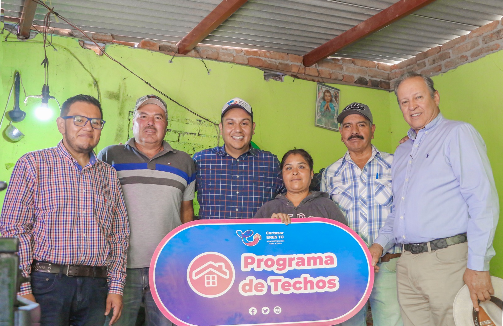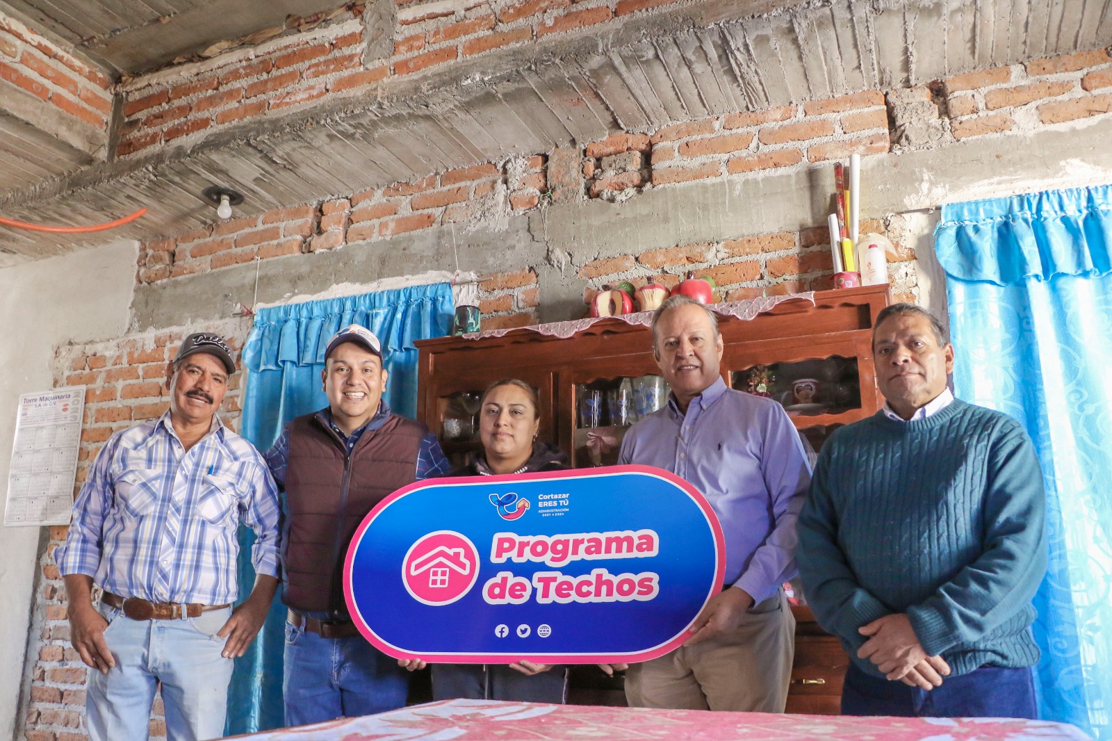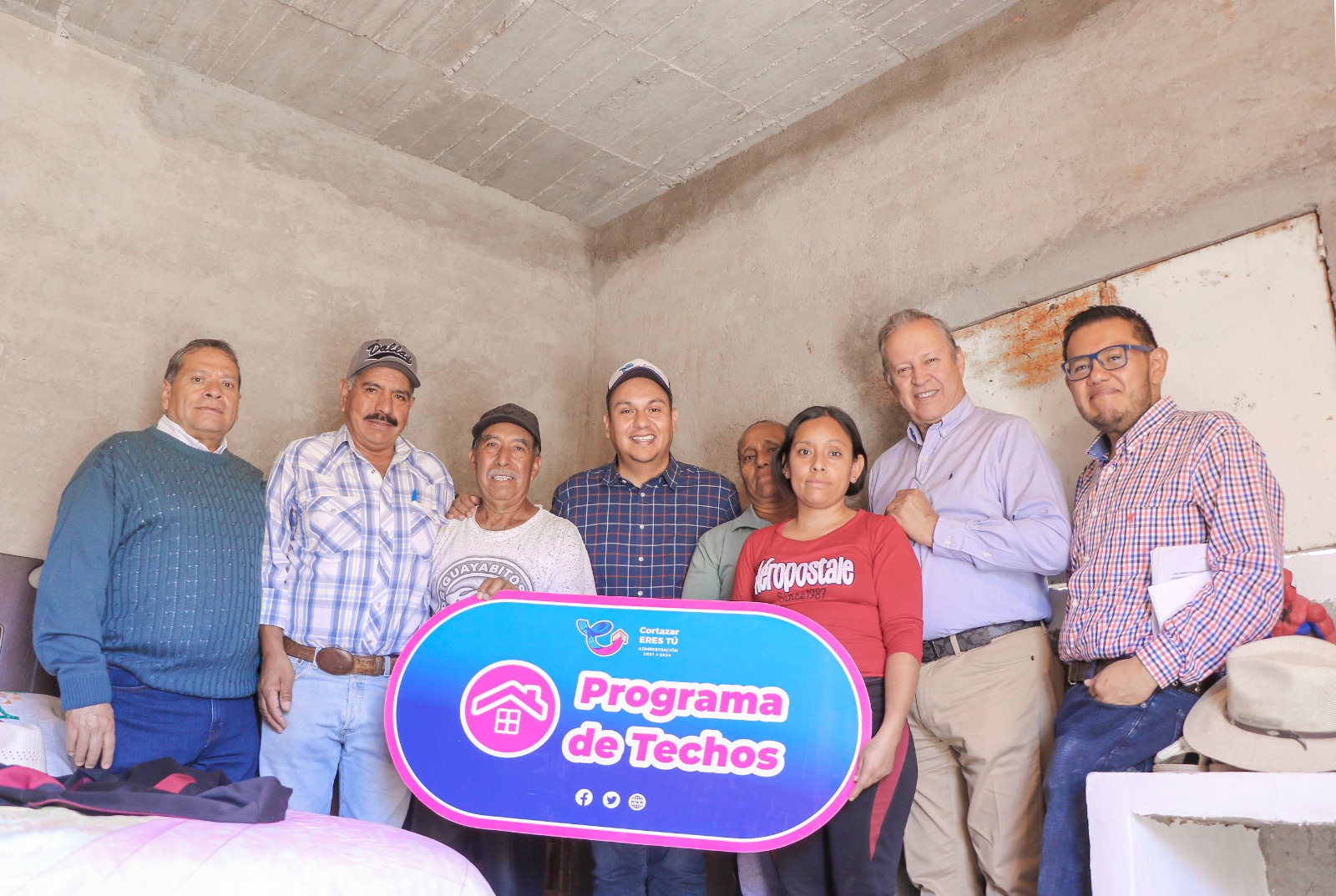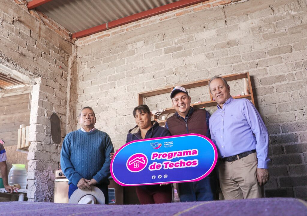 En esta comunidad la señora María Eugenia expresó su felicidad y agradecimiento al recibir un techo a base de concreto hidráulico, al señalar que ahora construir un techo es más difícil por el alza en los materiales y durante varios años batallaron para poder cambiar su techo de lámina por otro más resistente.