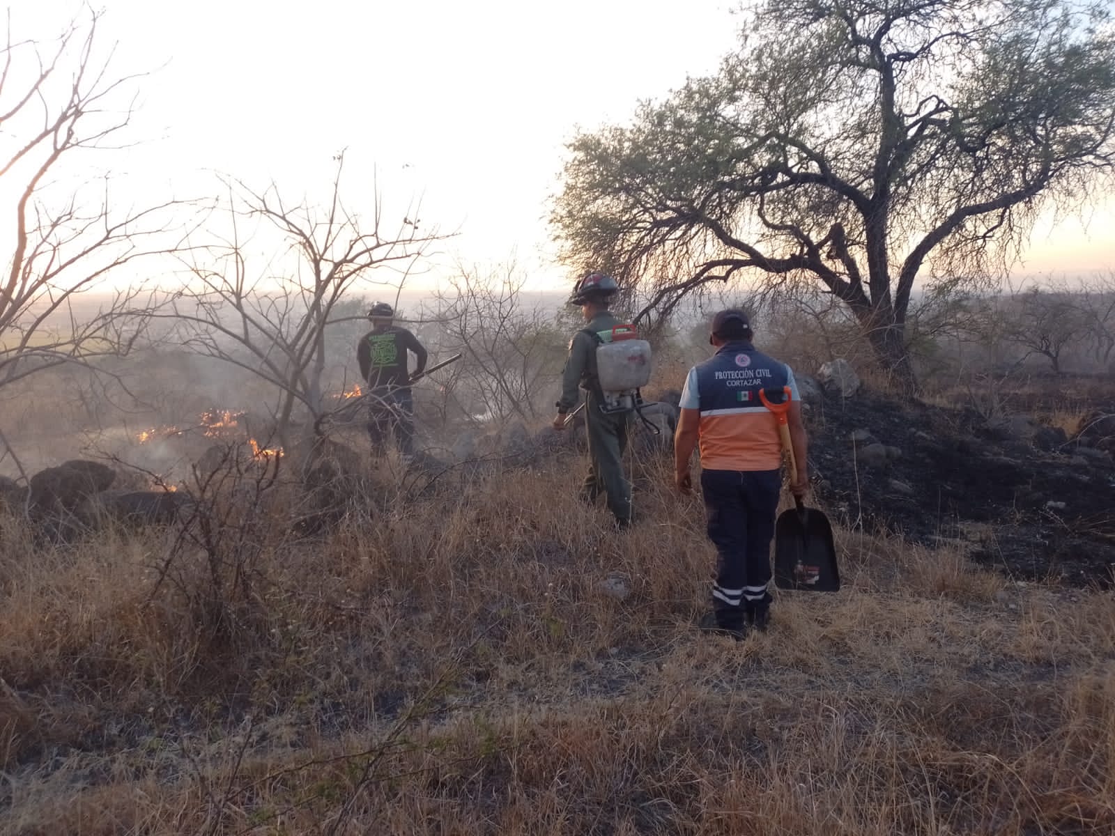 En el lugar trabajaron un total de 14 elementos de PC y Bomberos, quienes combatieron el fuego que afecto de 20 a 24 hectáreas de pastizal y un aproximado de 20 árboles de diferentes especies como mezquites, huizaches y nopaleras por mencionar algunos, pudiendo sofocar el incendio cerca de las 20:30 horas.
