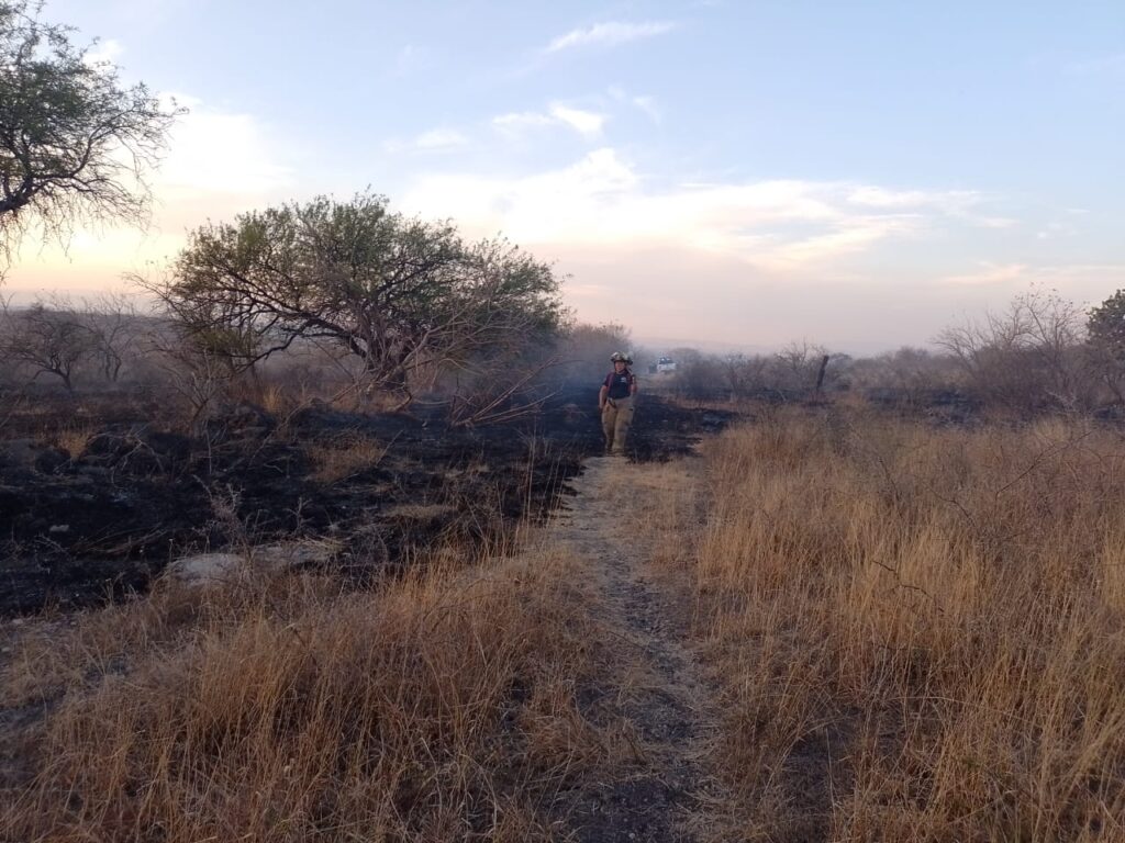La jefatura de Protección Civil en conjunto con Bomberos atendieron un reporte al 911 que se dio a las 5:00 de la tarde en la calle Guillermo Aguilar de la colonia Cerrito Colorado, donde se registró un incendio de pastizal.