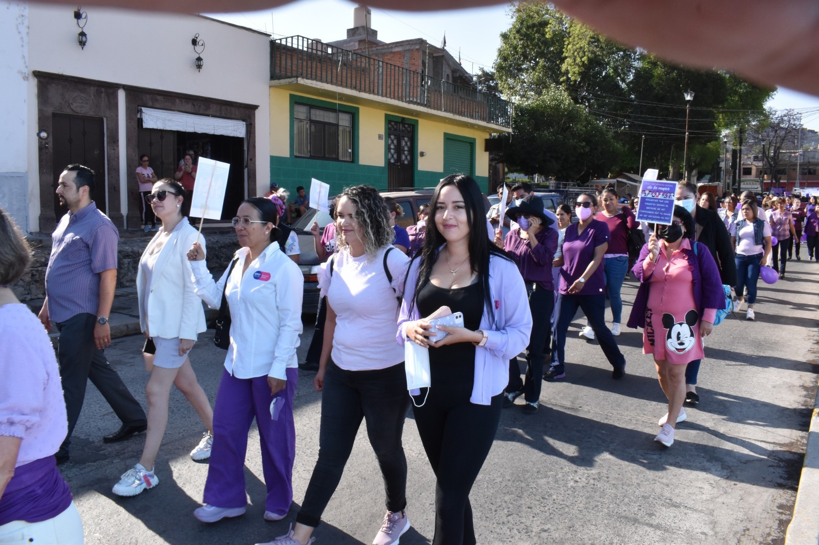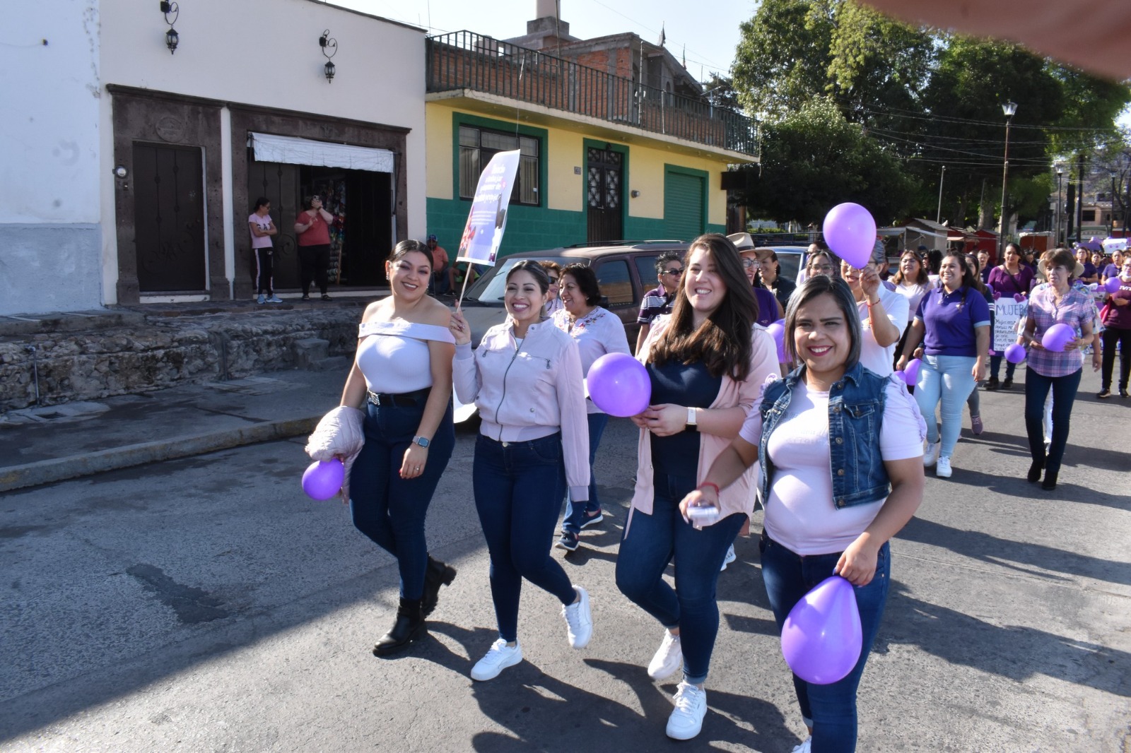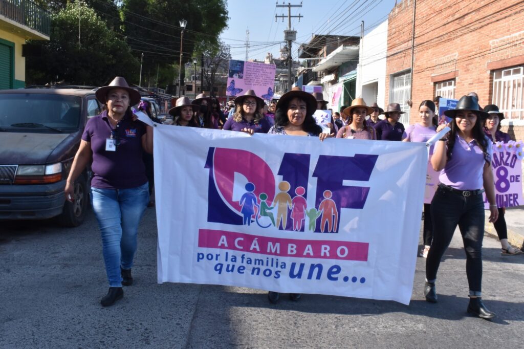 Después de hacer el recorrido, partiendo del jardín del Barrio de la Soledad, pasando por las principales calles del centro de la ciudad de Acámbaro, hasta llegar a la Plaza Cívica Miguel Hidalgo y Costilla, donde se congregaron las mujeres para emitir mensajes alusivos a la conmemoración del Día Internacional de la Mujer.