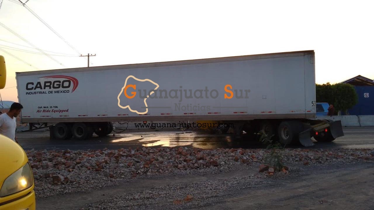 Un tractocamión se impactó de forma brutal contra el muro de contención en la carretera Celaya Salvatierra a la altura de la localidad Rincón de Tamayo.