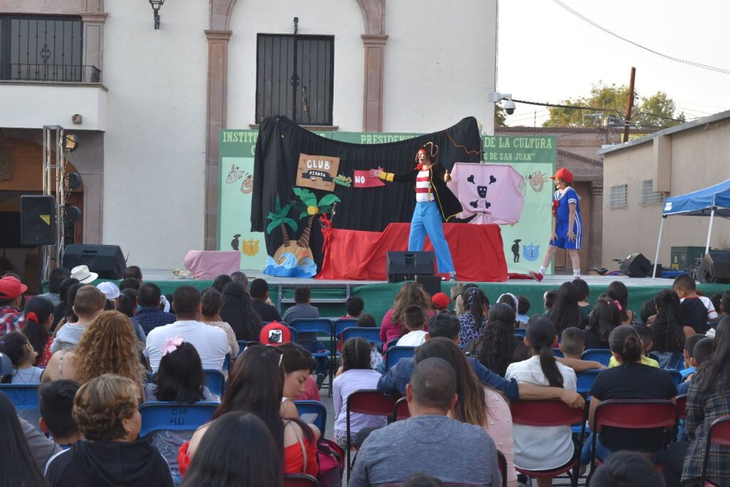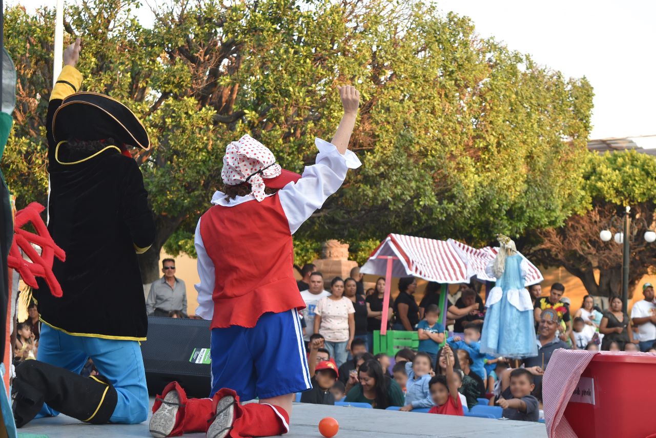 Con motivo de la conmemoración del Día de las Niñas y los Niños, en el jardín principal de Tarimoro Gto. El alcalde Moy Maldonado acompañado por la presidenta y el director de DIF Tarimoro Marina Lara y José Antonio Hernández, invitaron a las niñas y niños tarimorenses a presenciar la obra Una Aventura de Piratas, llevada a cabo por La Mirruña Teatro.