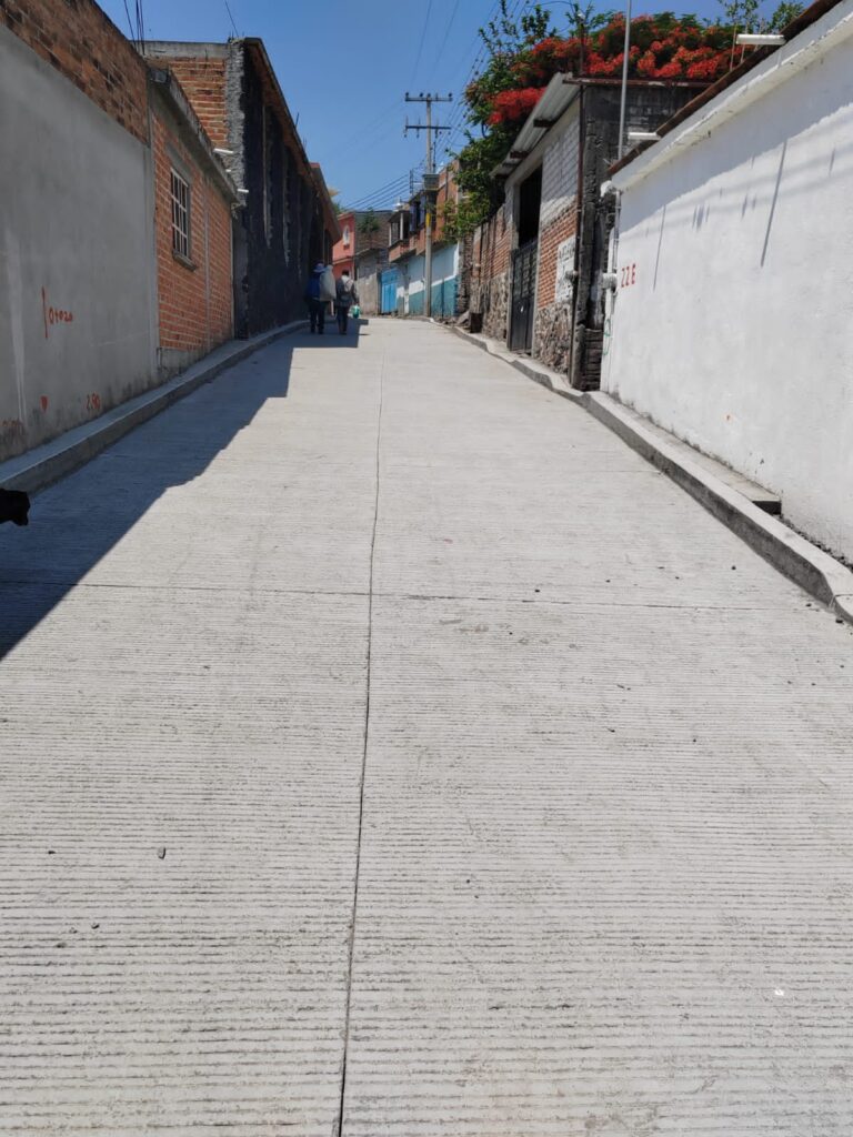 Los trabajos consistieron en la pavimentación de 648 metros cuadrados, 154 metros lineales de guarniciones, 165 metros cuadrado de banqueta, se instalaron 124 metros lineales de tubería, 8 descargas domiciliarias y se colocaron 3 pozos de visita.