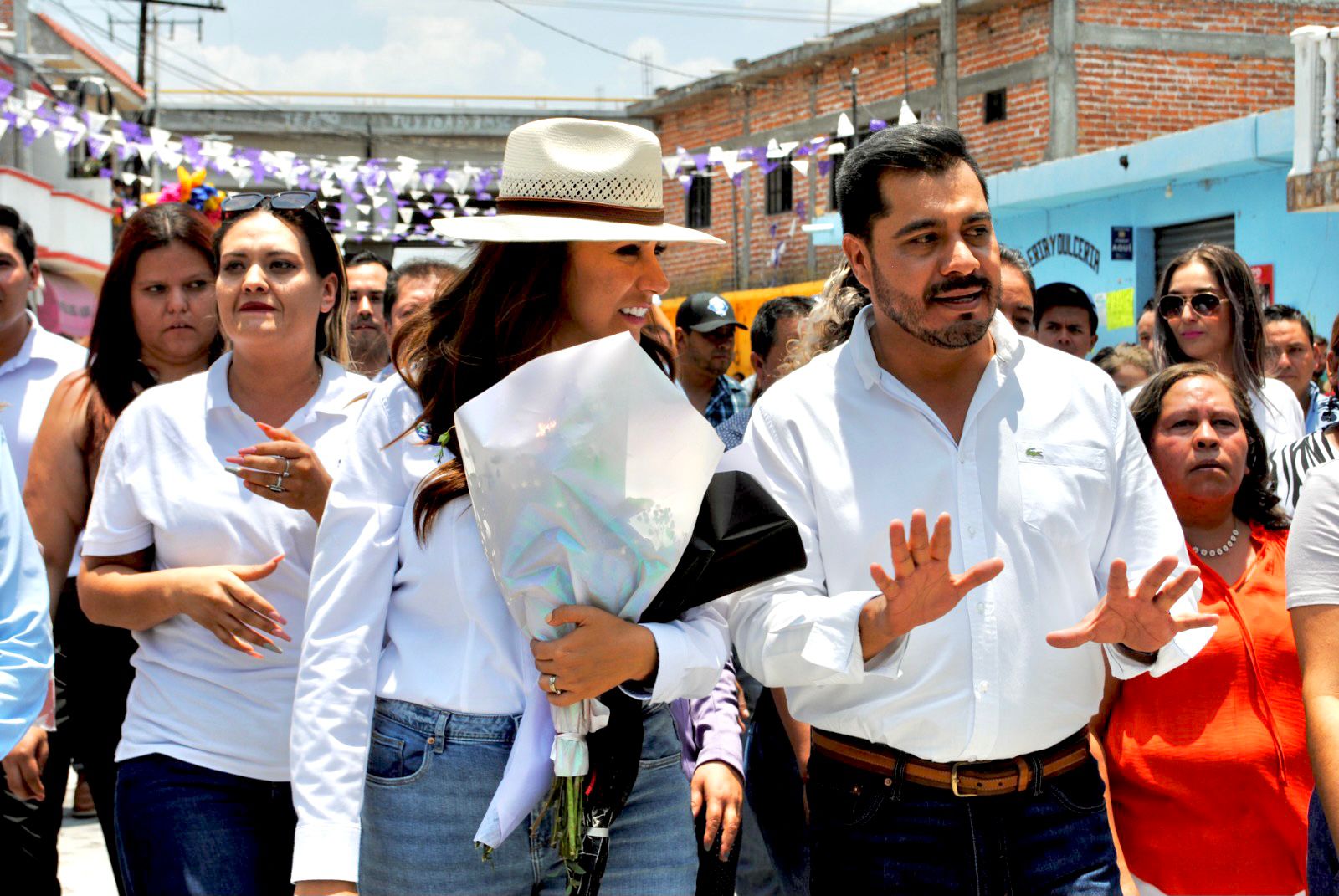 Moy Maldonado en compañía de Libia Dennise García Muñoz Ledo, Secretaria de Desarrollo Social y Humano, inauguraron la rehabilitación de la calle “Insurgentes” en la localidad de Panales Jamaica (Cañones).