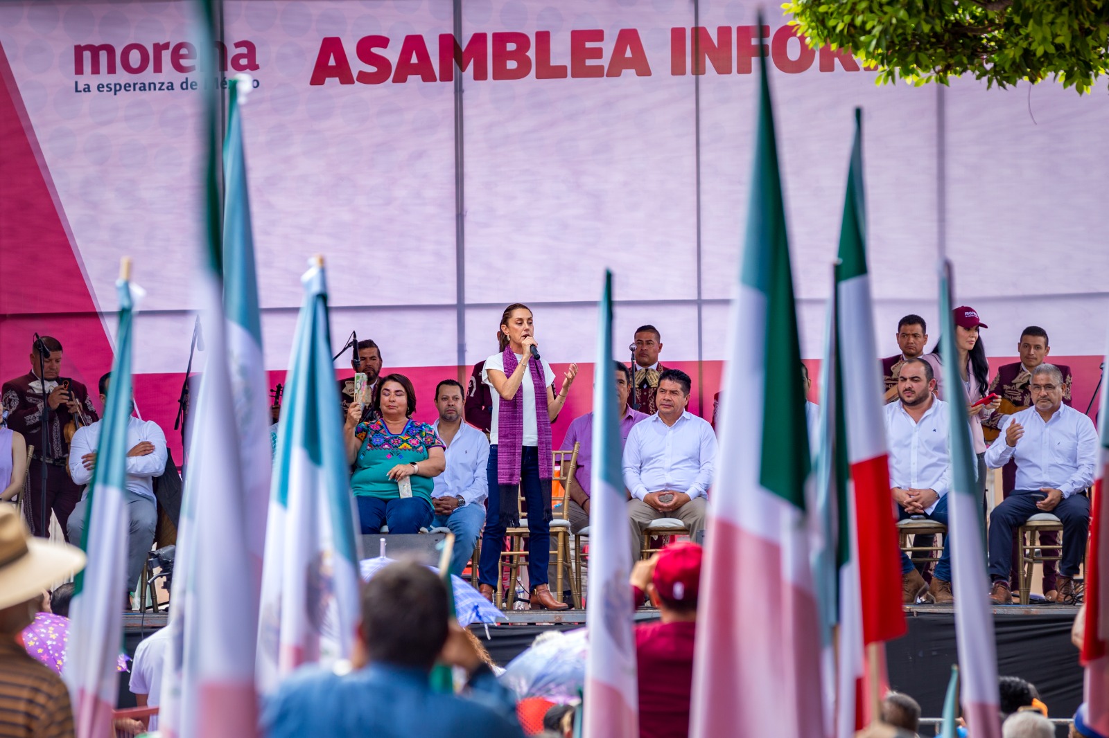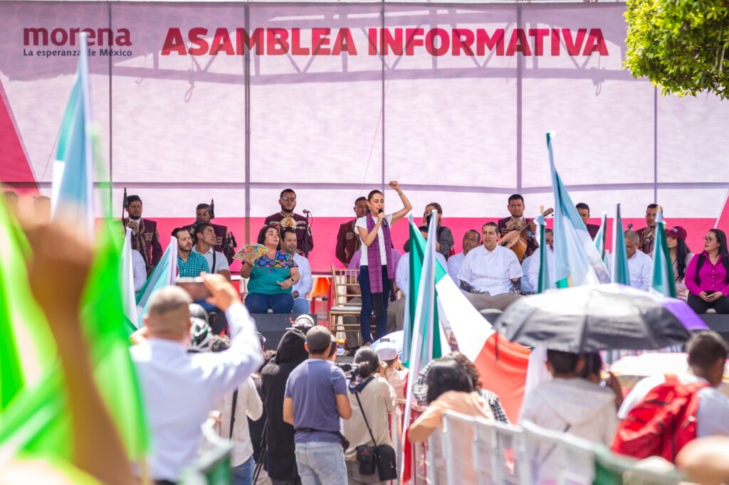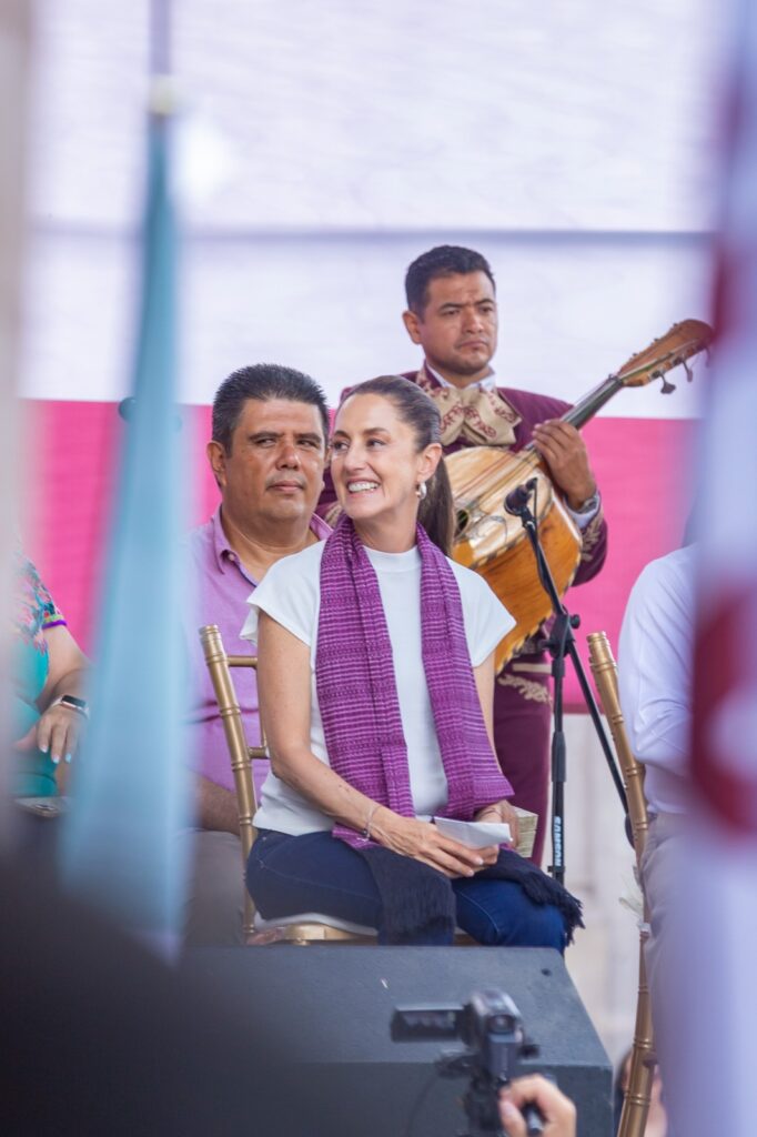 En el mitin de Claudia Sheinbaum Claudia Sheinbaum, la alcaldesa de Moroleon Alma Denisse Sánchez Barragan estuvo en el publico junto a varias personas, en su mayoría mujeres apoyando con porras y aplausos.