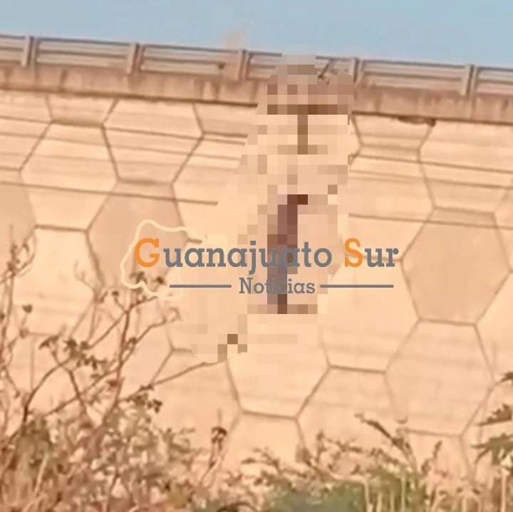 Macabra imagen fue la que observaron habitantes de la comunidad Rincón de Tamayo de Celaya, luego de observar un cadaver colgando en el puente de acceso a la localidad.