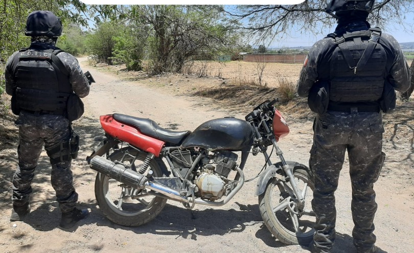 En otro hecho, en la comunidad de Rincón de Tamayo fue localizada una motocicleta de color negro con rojo, misma que no contaba con número de serie, placas y marca al momento de su inspección.