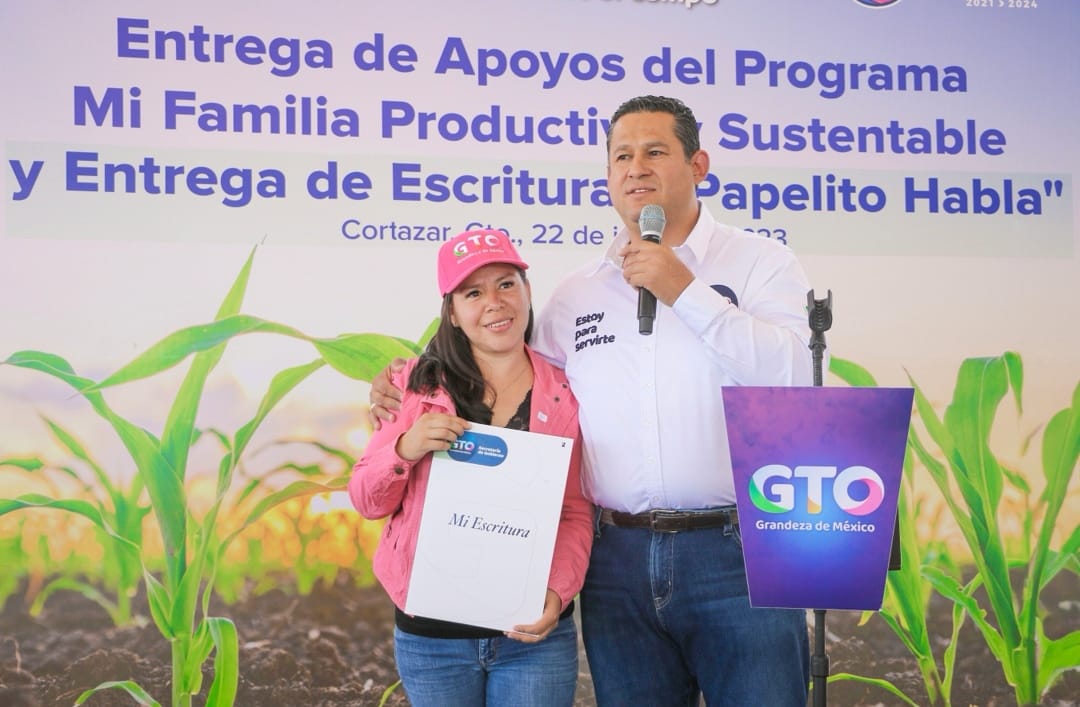 Este jueves el Presidente Municipal Ariel Corona en compañía del Gobernador del Estado Diego Sinhue Rodríguez, realizó la entrega de apoyos del programa “Mi Familia Productiva y Sustentable”, así como la entrega de escrituras a través del programa “Papelito Habla”.