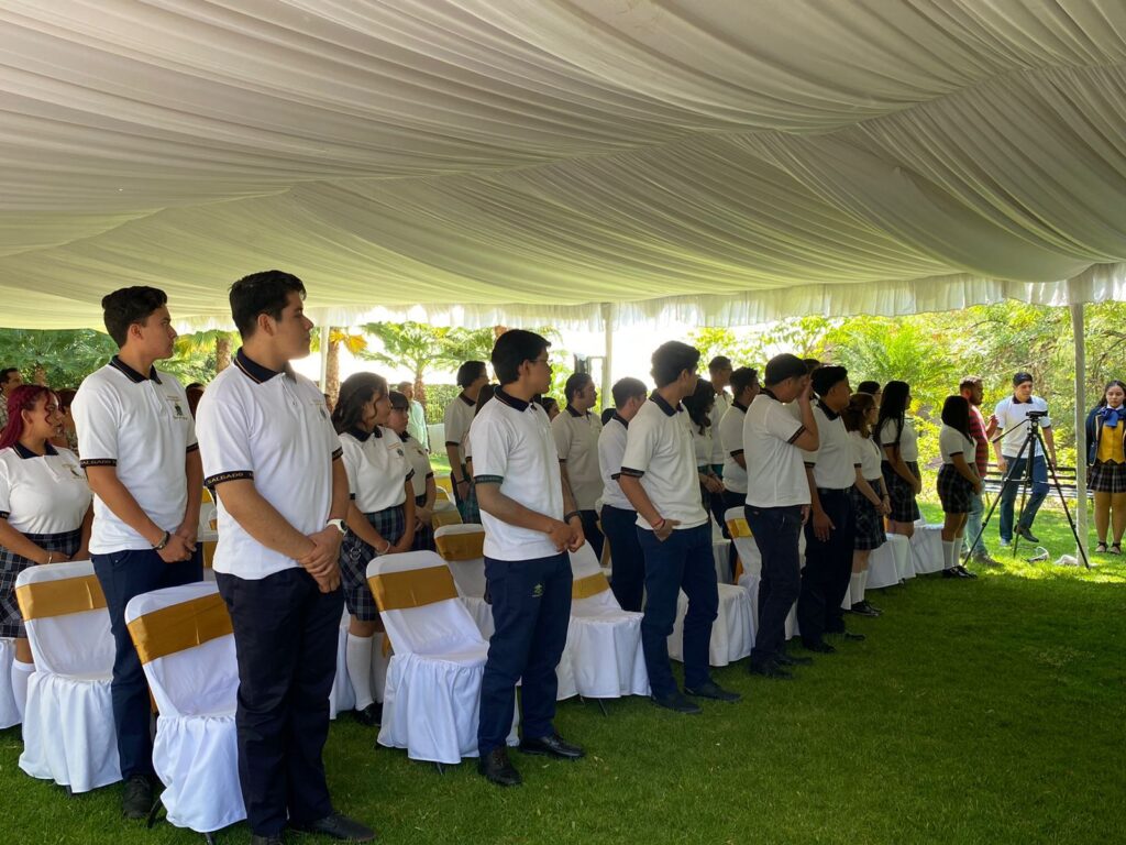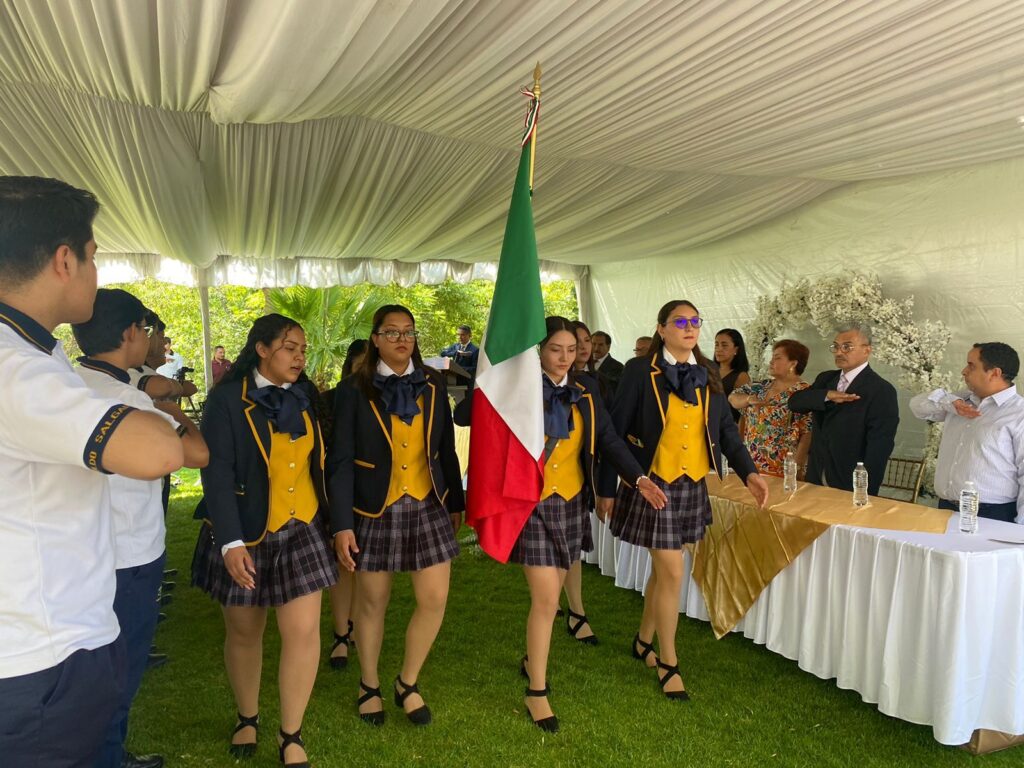 En el salón Los Cárcamos fue celebrada la ceremonia de graduación de los alumnos egresados de la escuela de nivel medio superior Leopoldo Salgado Tovar dando inicio con un acto cívico donde se rindieron honores a la bandera y la entonación del Himno Nacional Mexicano.