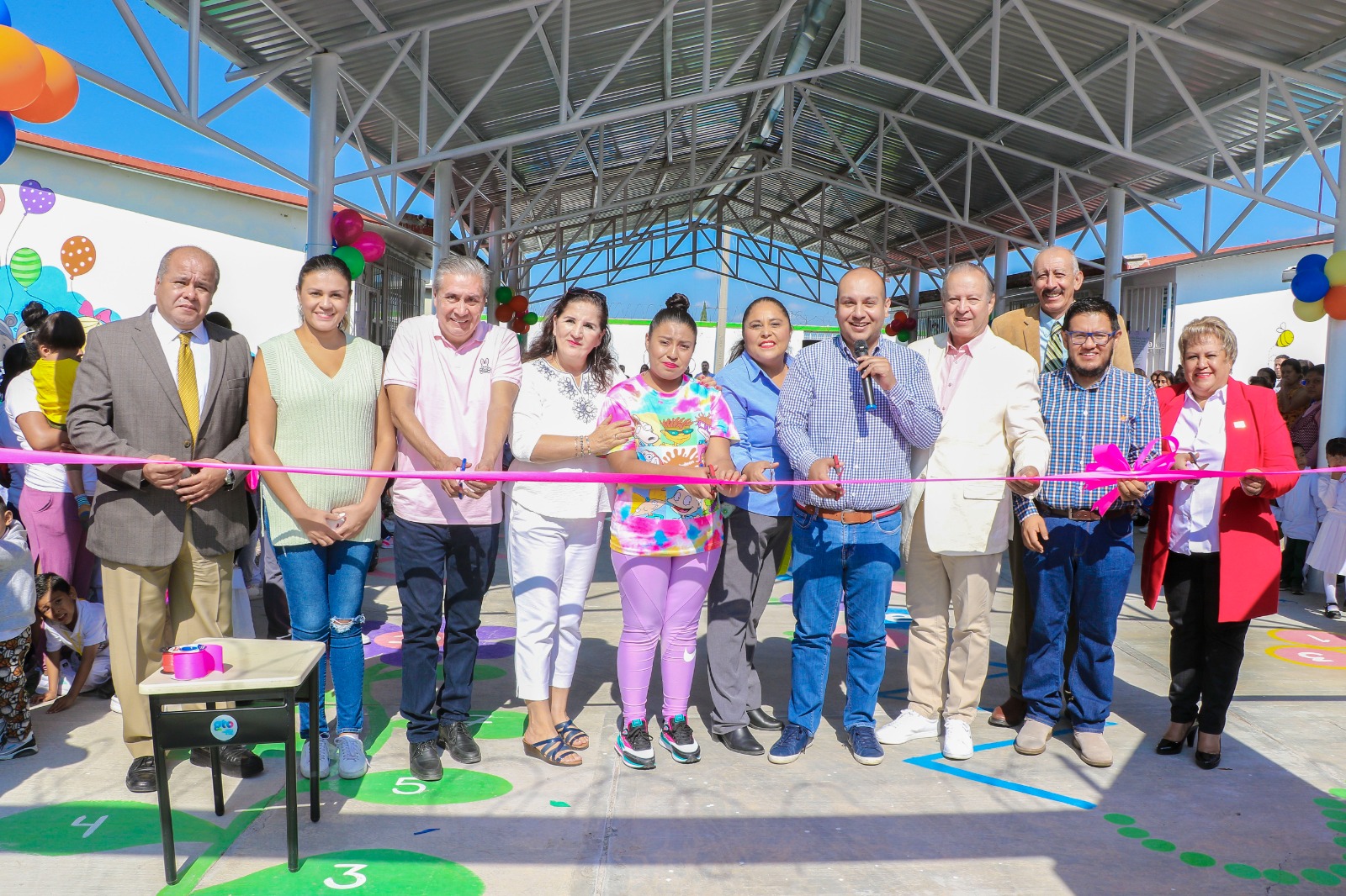 De la misma forma, inauguró la nueva techumbre del preescolar, una obra muy esperada por la comunidad estudiantil, y hoy que cuentan con ella podrán llevar a cabo diversas actividades enfocadas al aprendizaje de los alumnos.