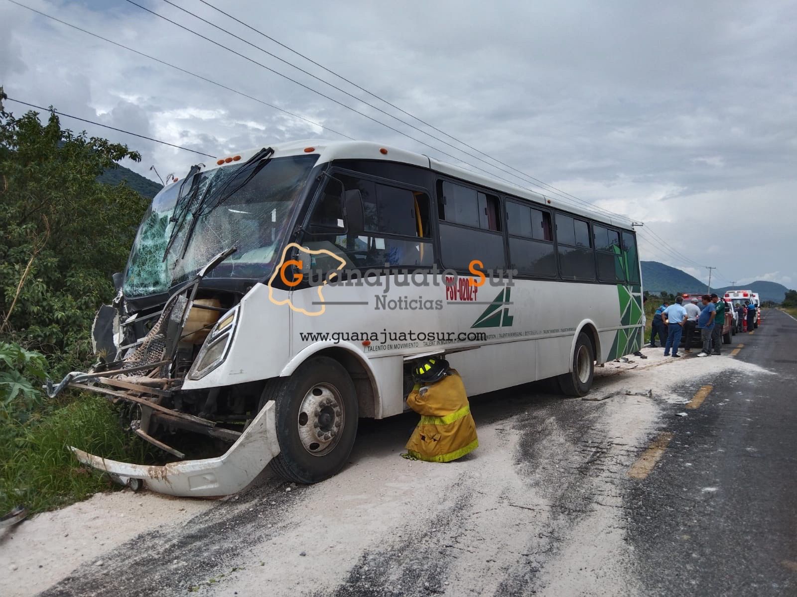 Se reportó un accidente de tránsito tipo alcance de un camión de pasajeros de la empresa Kostal contra un camión volteo, los hechos ocurrieron en la carretera Irámuco-Moroleón, en el incidente una persona resultó lesionada.