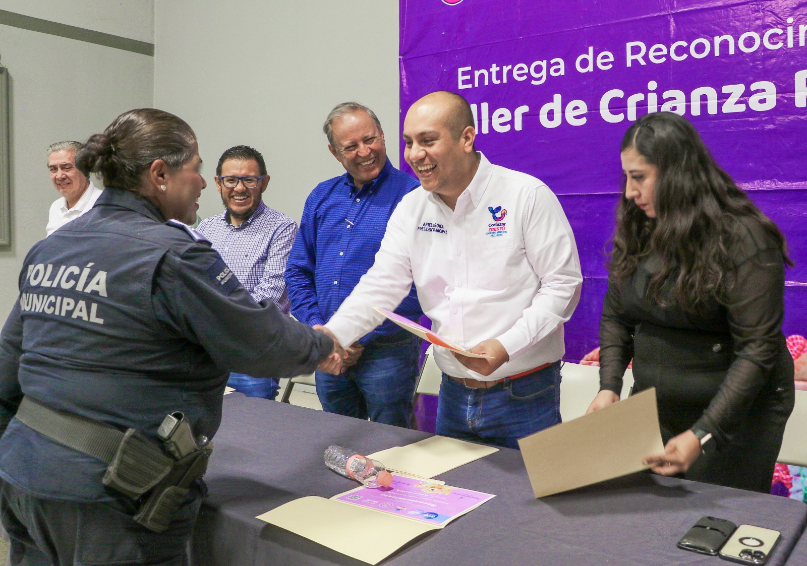 Con el fin de mejorar su calidad de vida y la de sus familias, además de que los conocimientos adquiridos sean de utilidad para sentar en la sociedad cimientos que puedan llevar a crecer en un ambiente de respeto, personal de la Dirección de Seguridad Pública concluyó su preparación dentro del taller Crianza Positiva.