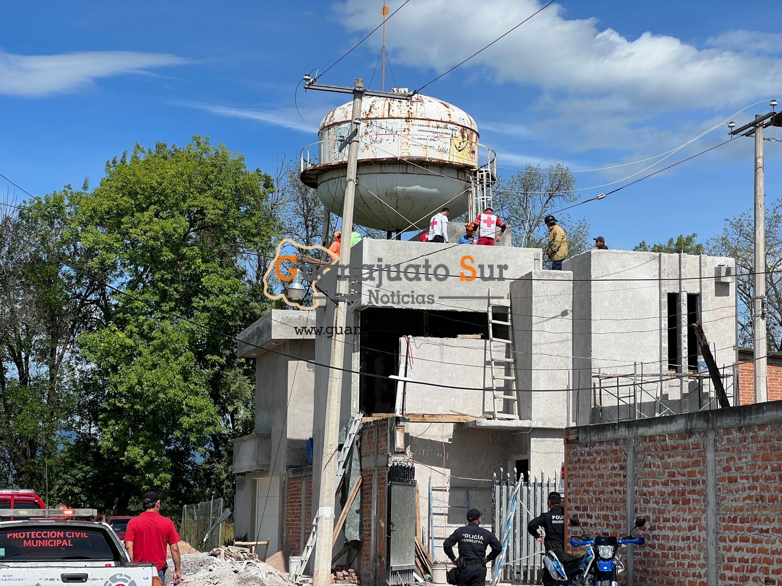 Los socorristas subieron hacia el techo del segundo piso de la vivienda donde comenzaron a brindar los servicios pre hospitalarios al lesionado mientras esperaban en el arribo del cuerpo de bomberos para apoyarlos en bajar a la persona a ras de piso.