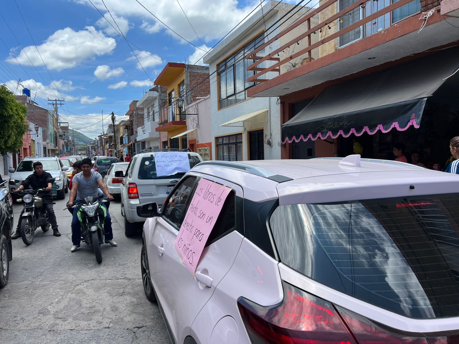 Docentes realizaron una manifestación pacífica que dio inicio con un recorrido motorizado por distintas calles del centro de la ciudad culminando en las instalaciones de USAE dónde exigieron la entrega de los libros de texto de la SEP que se tienen almacenados.