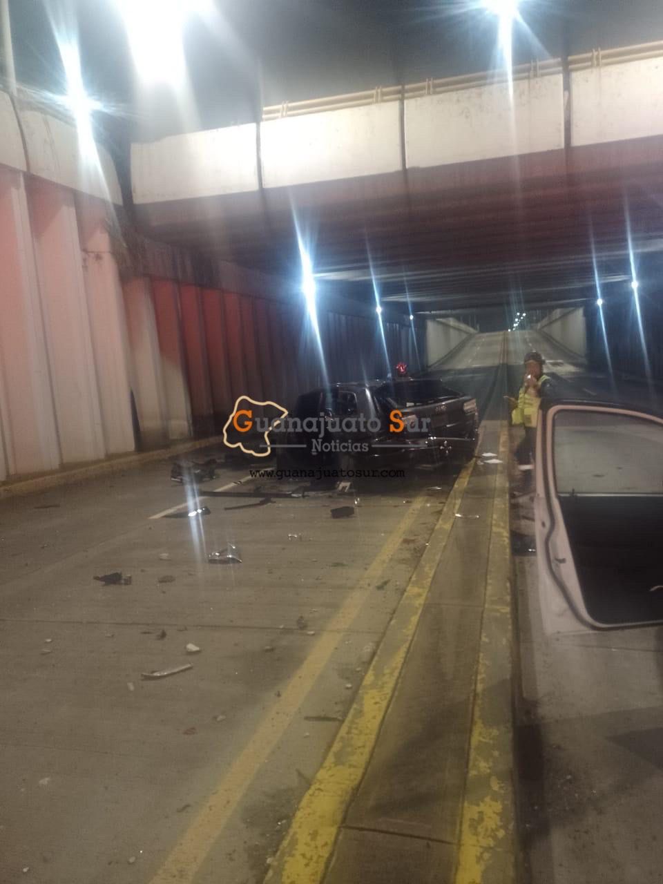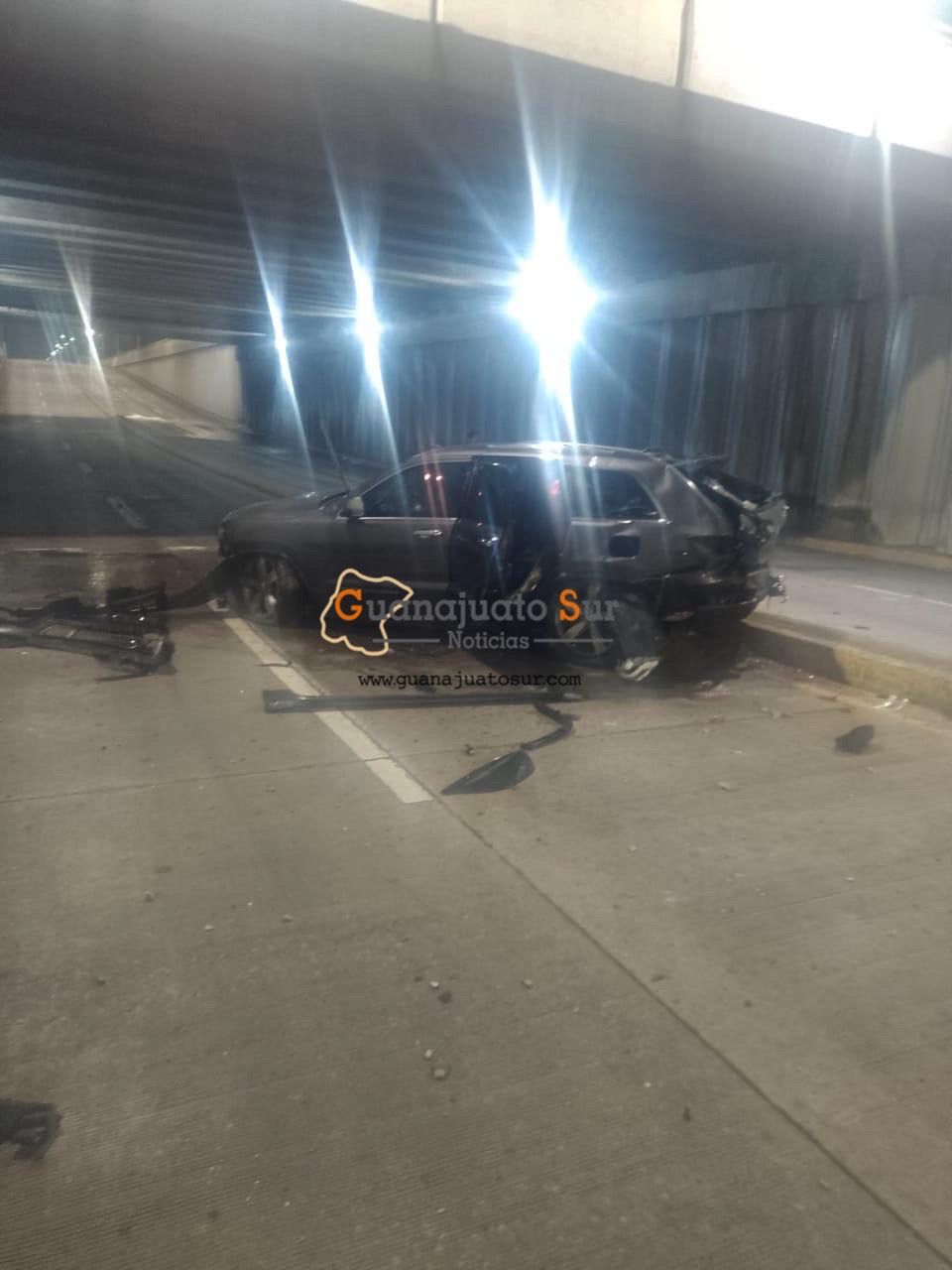 Una camioneta quedó prácticamente destruida luego de caer del puente elevado de avenida tecnológico y Torres Landa en el municipio de Celaya.