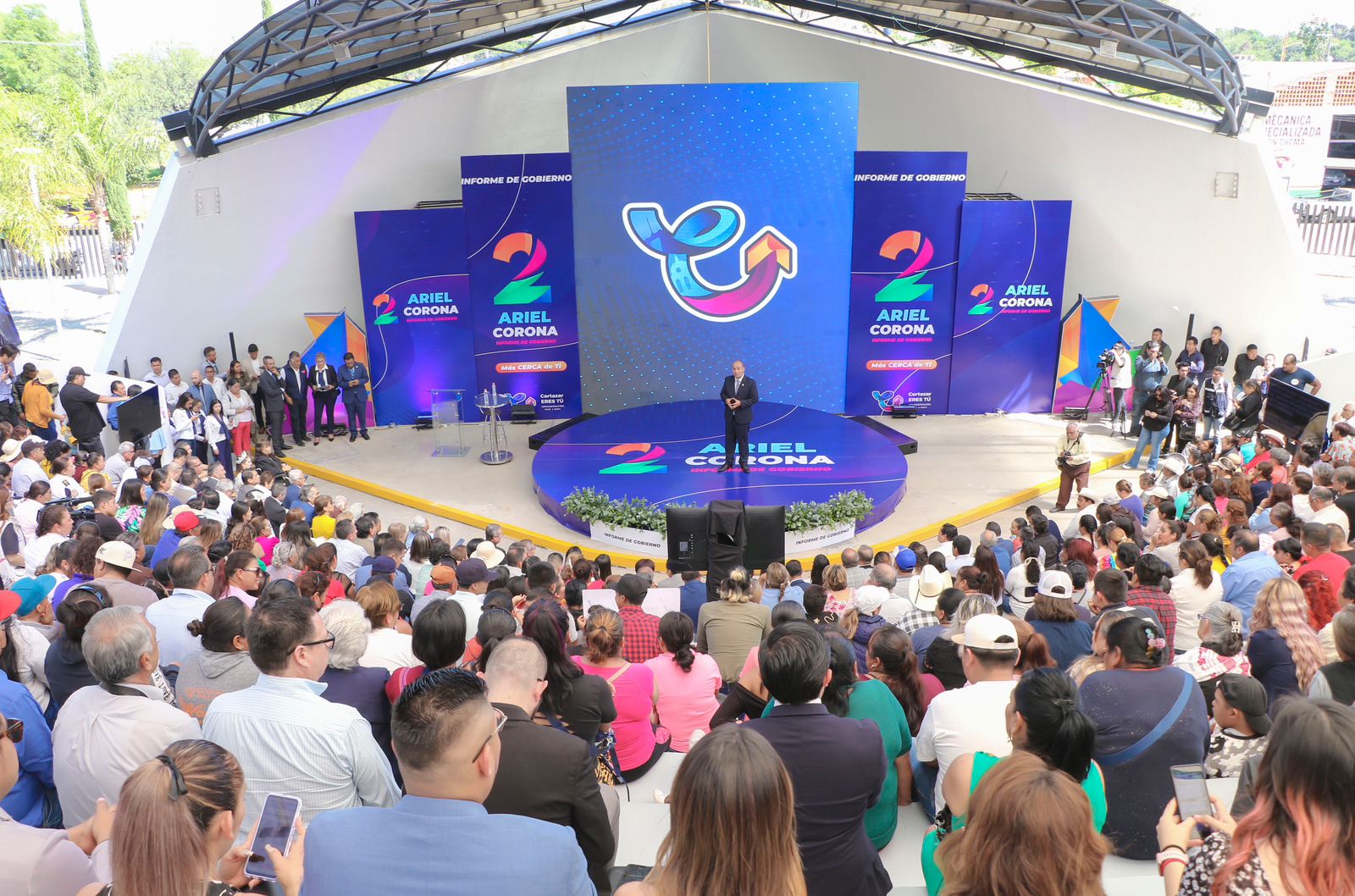 El Presidente Municipal, Ariel Corona Rodríguez, presentó en Sesión Solemne de Ayuntamiento su Segundo Informe de Gobierno, donde destacó que se concretaron 33 acciones en materia de infraestructura, conectividad e imagen urbana, con una inversión superior a los 54 millones de pesos, además de que confirmó una inversión de 150 millones de pesos en materia de seguridad, para fortalecer la infraestructura que se tiene a disposición de las y los ciudadanos.