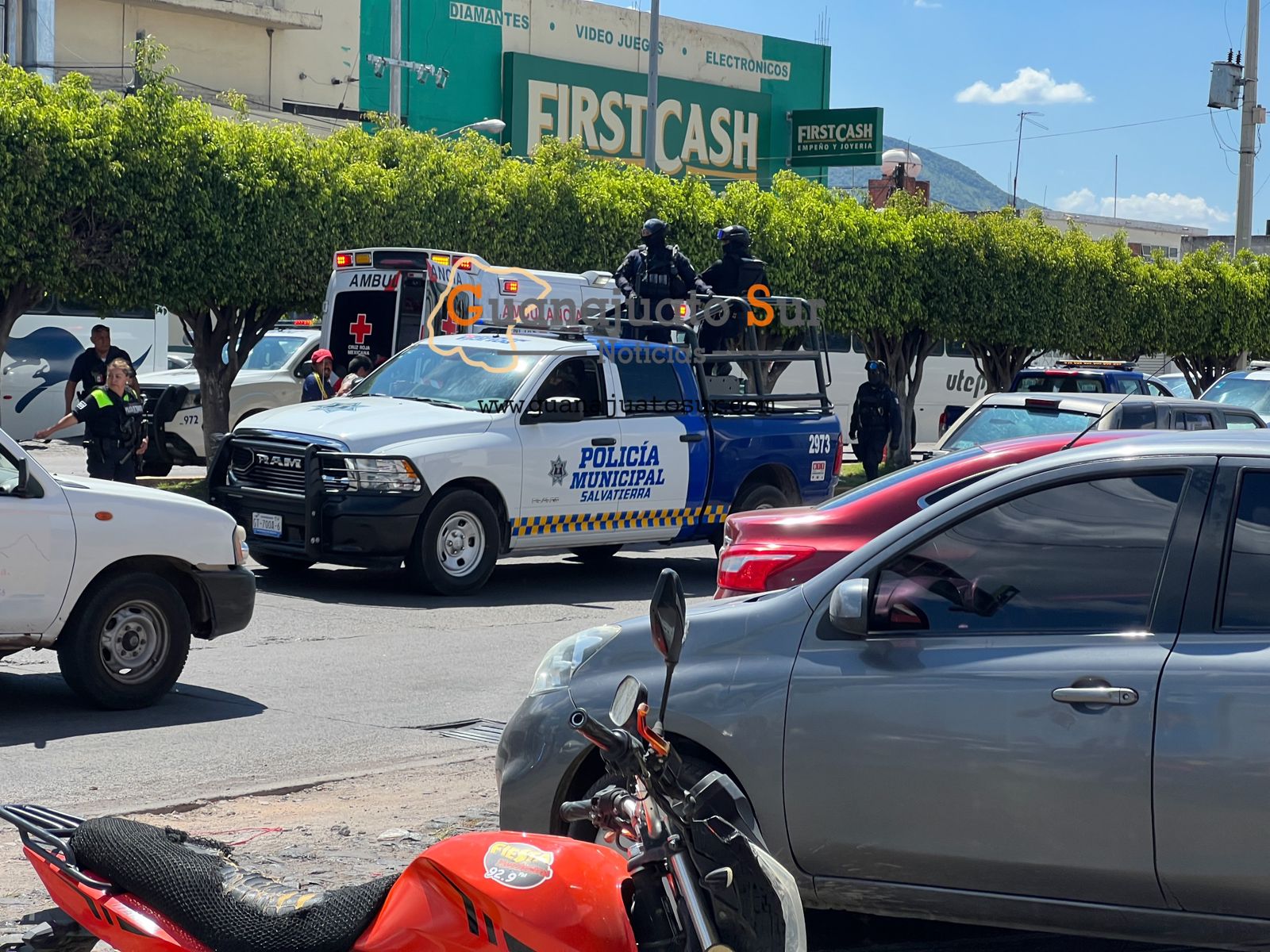 Ante el llamado elementos de seguridad pública municipal se desplegaron en una fuerte movilización policiaca hacia la zona, localizando justo en el cruce vehicular a dos masculinos con lesiones de bala.