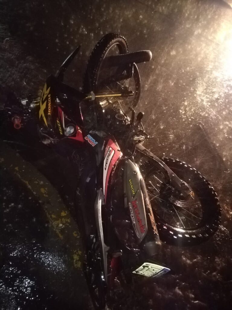 Mientras tanto la motocicleta de la marca Vento tipo Cross Max doble propósito de color negro con estampados rojos y escape deportivo fue llevada por una grúa hacia el corralón donde permanecerá hasta el término de las investigaciones para determinar culpabilidades.