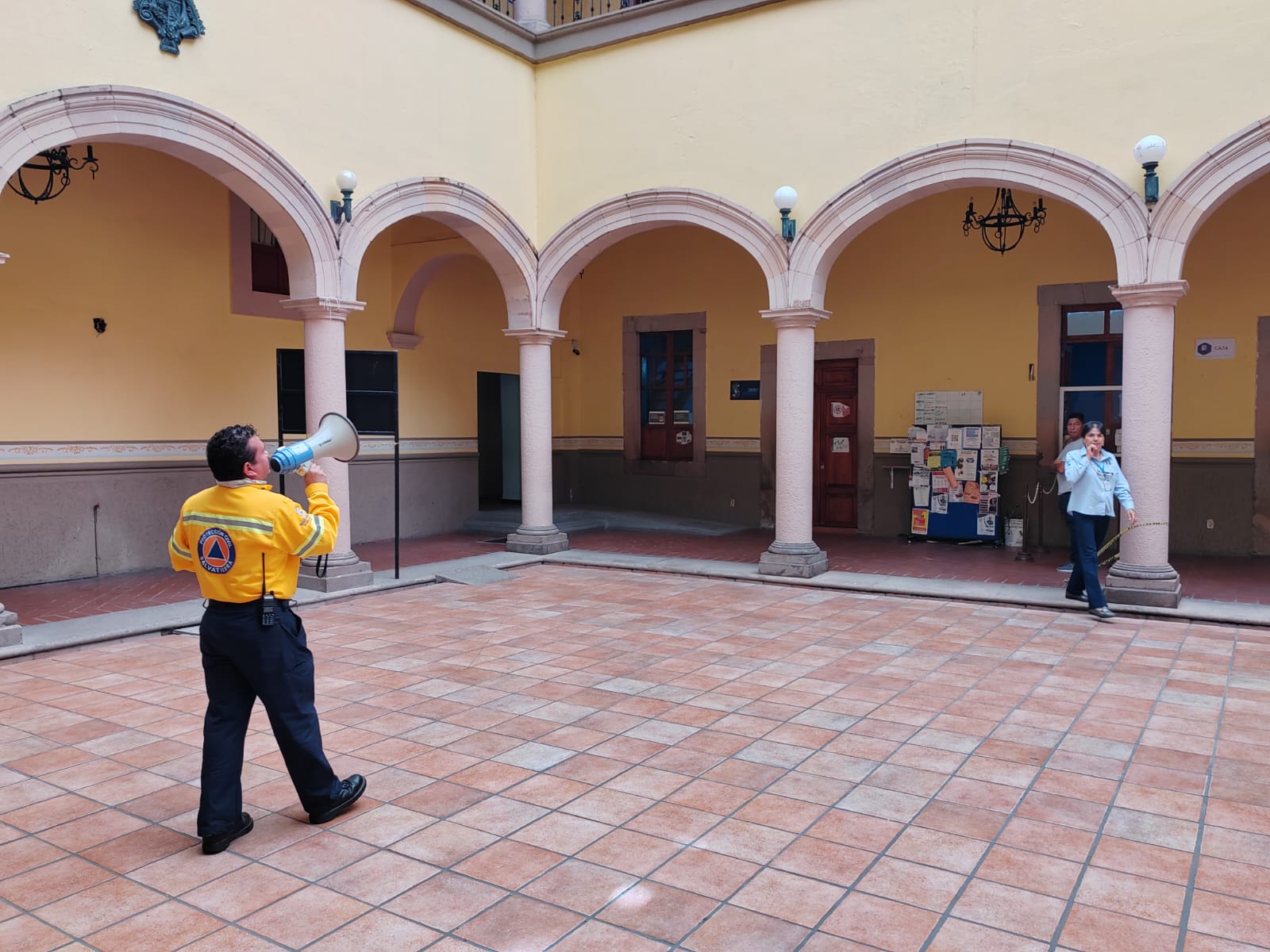 Funcionarios públicos, estudiantes de diversas escuelas y personal de empresas y sector salud participaron en el segundo simulacro nacional coordinado por el área de Protección Civil.