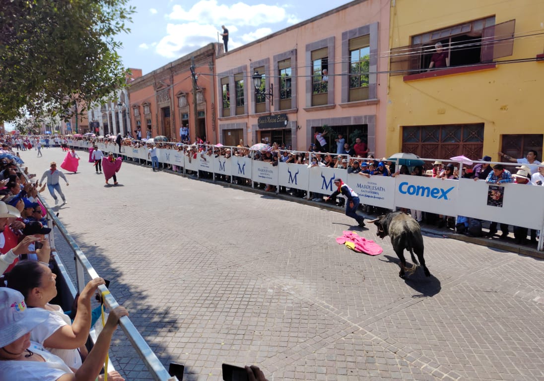 Ya en la tarde en la calle Benito Juárez se realizó por segundo año consecutivo el encierro de toros infantil en donde decenas de menores de edad vivieron una experiencia taurina corriendo de toros inflables, conviviendo de manera armónica y llenos de alegría.