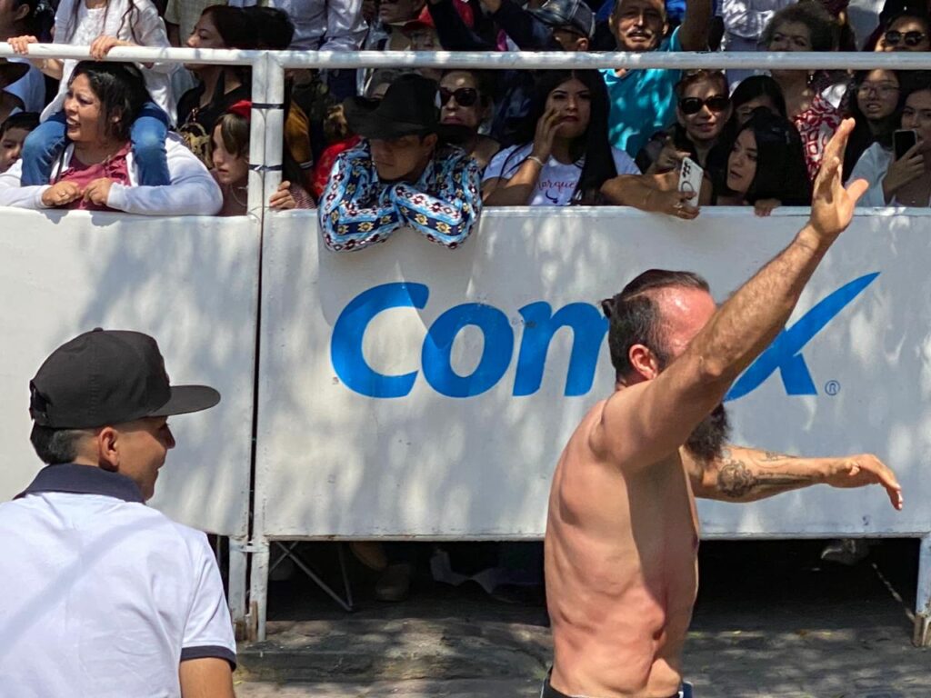 Ricardo comenzó a llamar la atención de la gente desde antes de que se soltara el primer toro ya que decidió ingresar mostrando su musculatura participando sin camisa junto a su hermano.