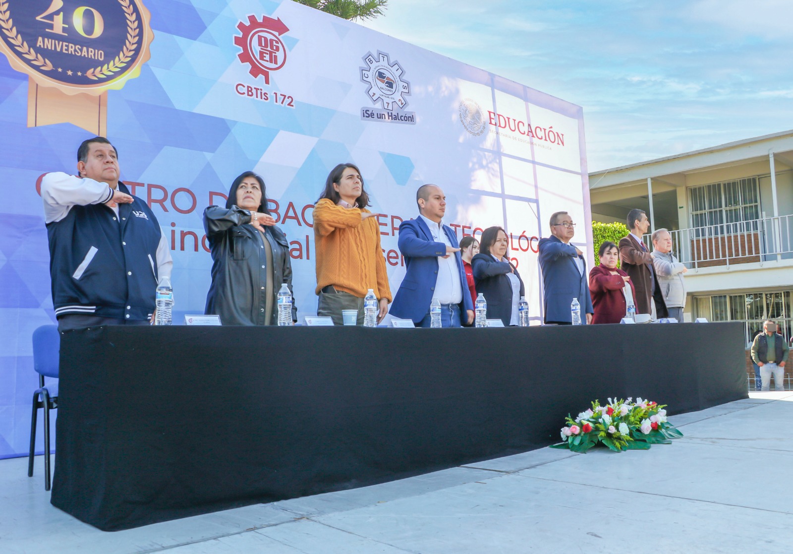 El Presidente Municipal, Ariel Corona Rodríguez, en compañía de autoridades municipales y educativas, encabezó el acto cívico e inicio de los festejos por el 40 aniversario de la fundación del Centro de Bachillerato Tecnológico Industrial y de Servicios (CBTIS) número 172, institución educativa de la que han egresado más de 10 mil alumnos a lo largo de 37 generaciones.