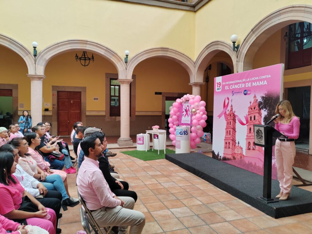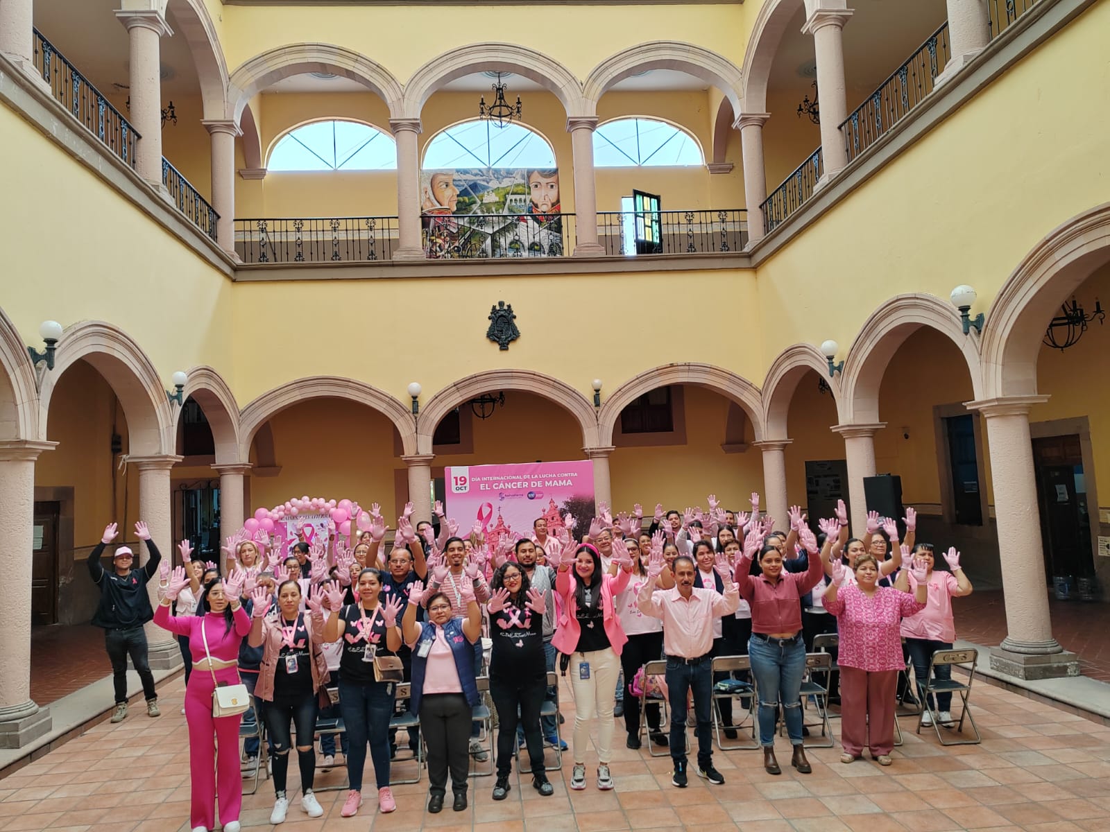 En el patio de Presidencia municipal se llevó a cabo un acto con motivo del Día Internacional de la Lucha Contra EL Cáncer de Mama, en donde se contó con la asistencia de la Presidenta del DIF Marieli Cervantes Vega, el Jefe de la Jurisdicción Sanitaria 4 Dr. Uver Martínez Camacho, personal médico del CAISES y ciudadanas.