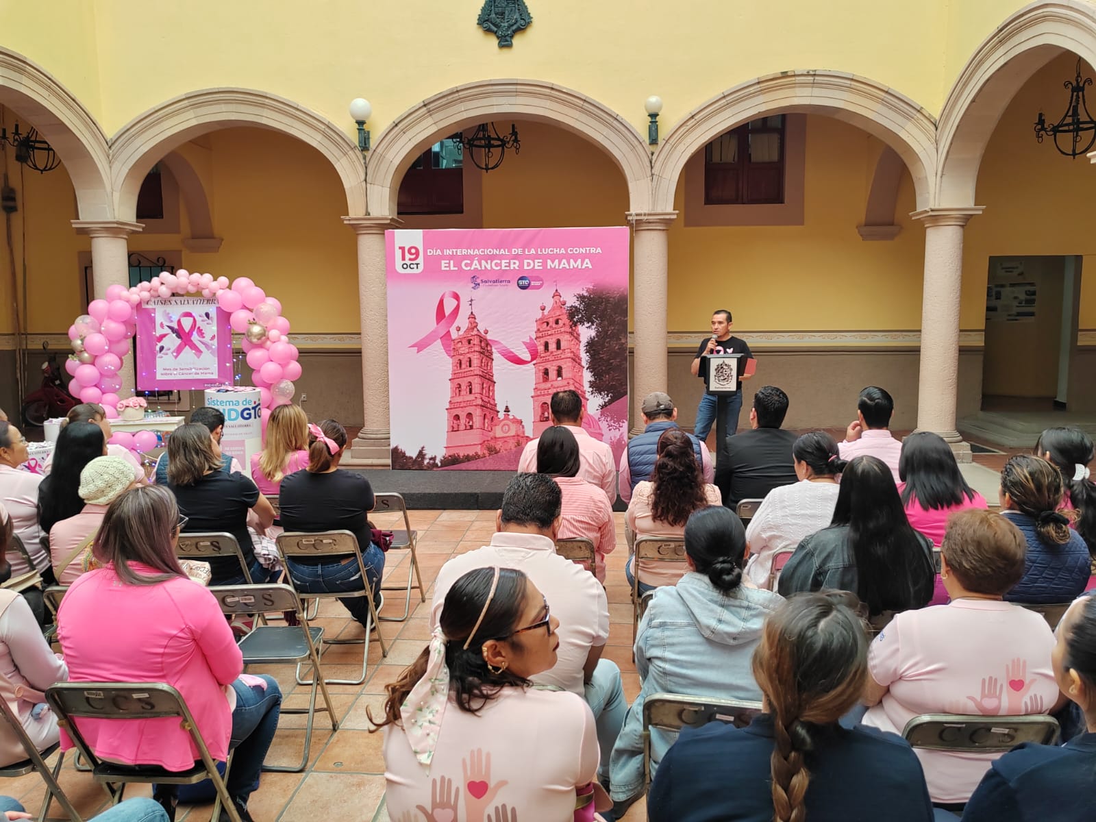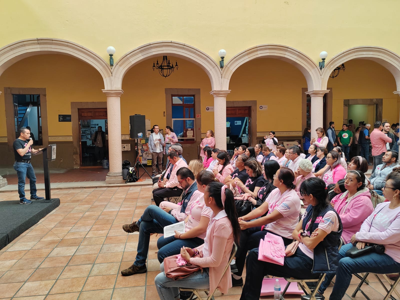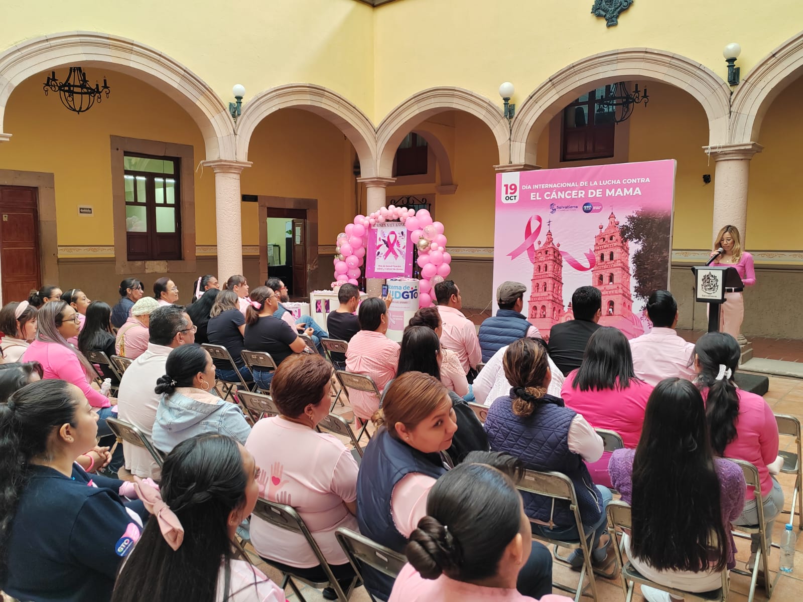 En el patio de Presidencia municipal se llevó a cabo un acto con motivo del Día Internacional de la Lucha Contra EL Cáncer de Mama, en donde se contó con la asistencia de la Presidenta del DIF Marieli Cervantes Vega, el Jefe de la Jurisdicción Sanitaria 4 Dr. Uver Martínez Camacho, personal médico del CAISES y ciudadanas.