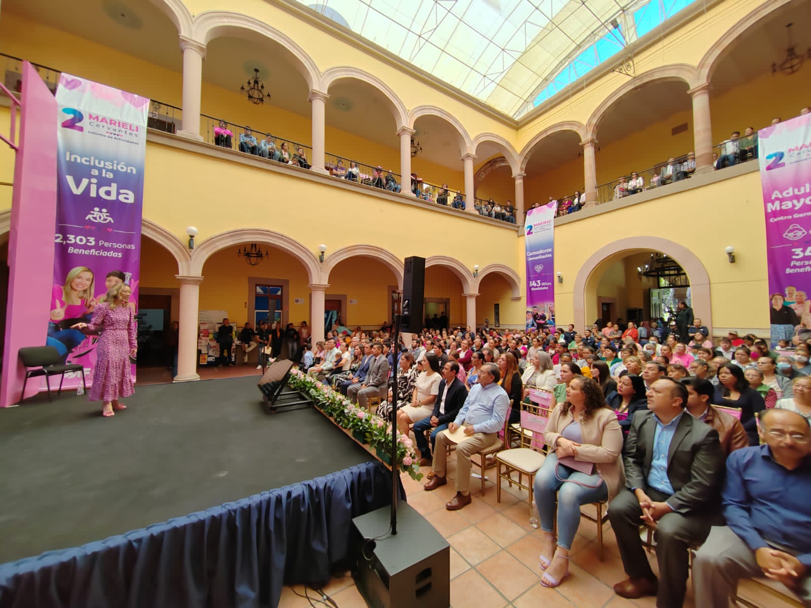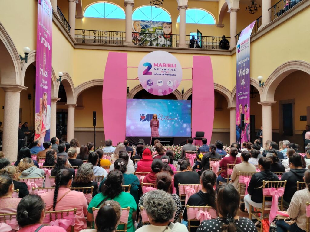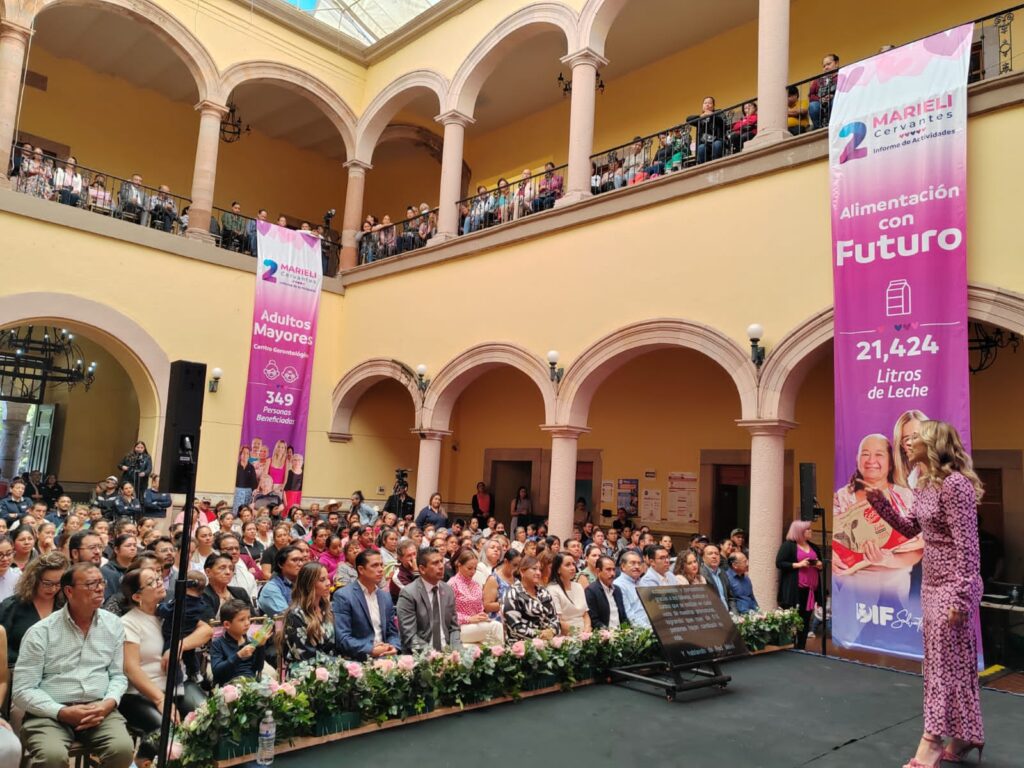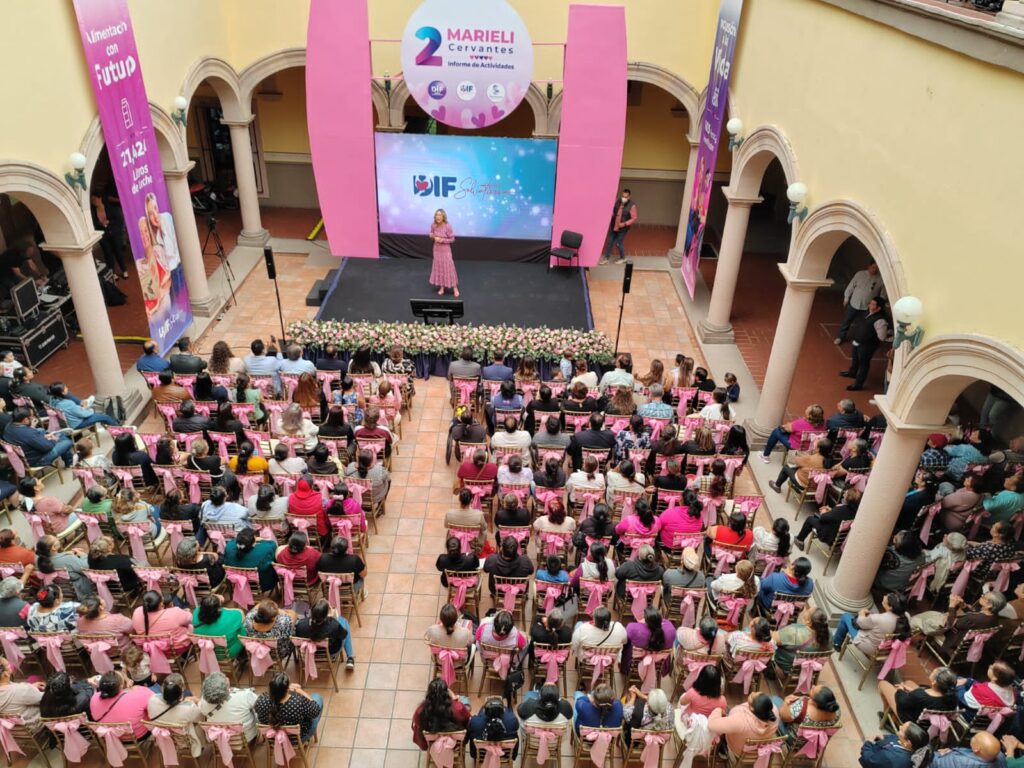 Marieli Cervantes Vega Presidenta del Sistema DIF municipal rindió su informe anual de actividades en donde resaltó las acciones realizadas a través de los programas Red Móvil, Alimentación con Futuro, Adultos Mayores, Inclusión a la Vida y Comedores comunitarios.