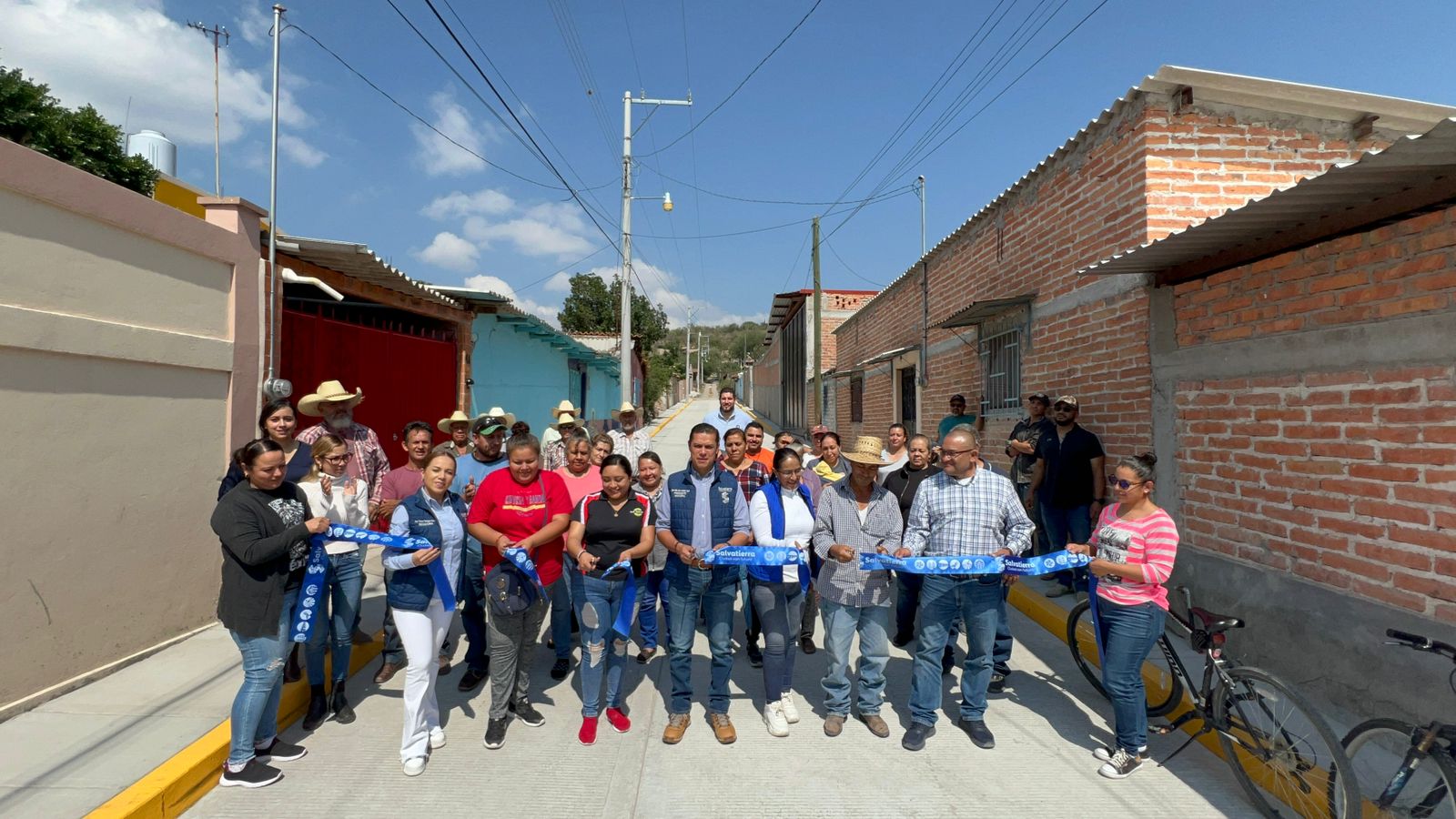 Cervantes Vega en compañía de habitantes de la Estancia de San José del Carmen inauguraron la rehabilitación de la calle Juventino Rosas la cual es una de las principales avenidas de la zona.